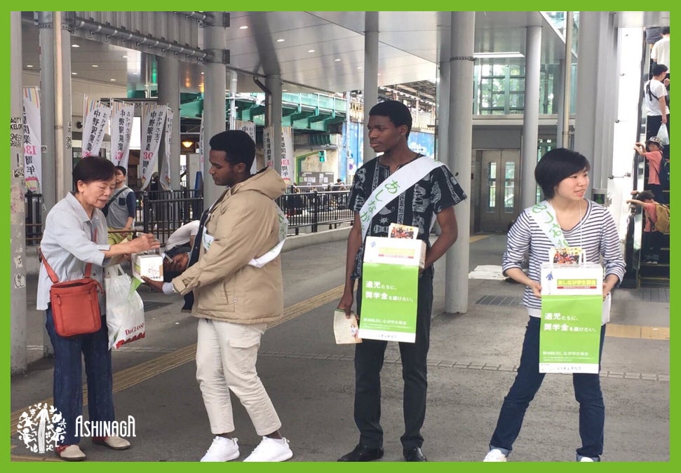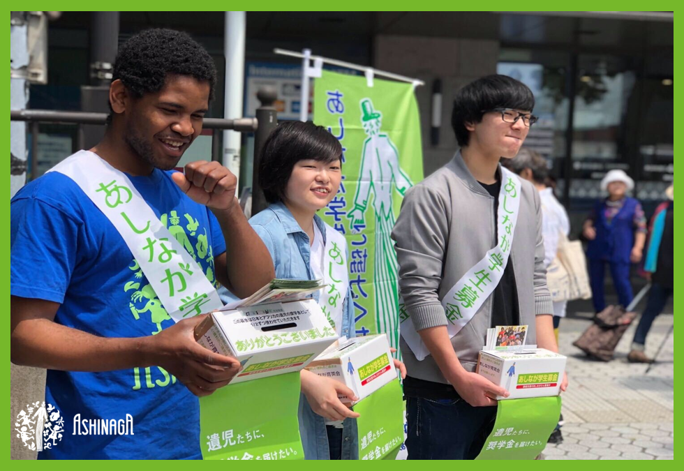 It is a fundraising organization for supporting orphaned students with a history of 50 years and is run by students only. Every year in spring and autumn, there are about 200 volunteers who participate in street fund-raising activities that are carried out at about 200 locations nationwide and donate about 250 million yen annually. All of the donations are donated to the Ashinaga Scholarship Foundation and are used for the Ashinaga Scholarship Project (domestic scholarship project/AAI project).