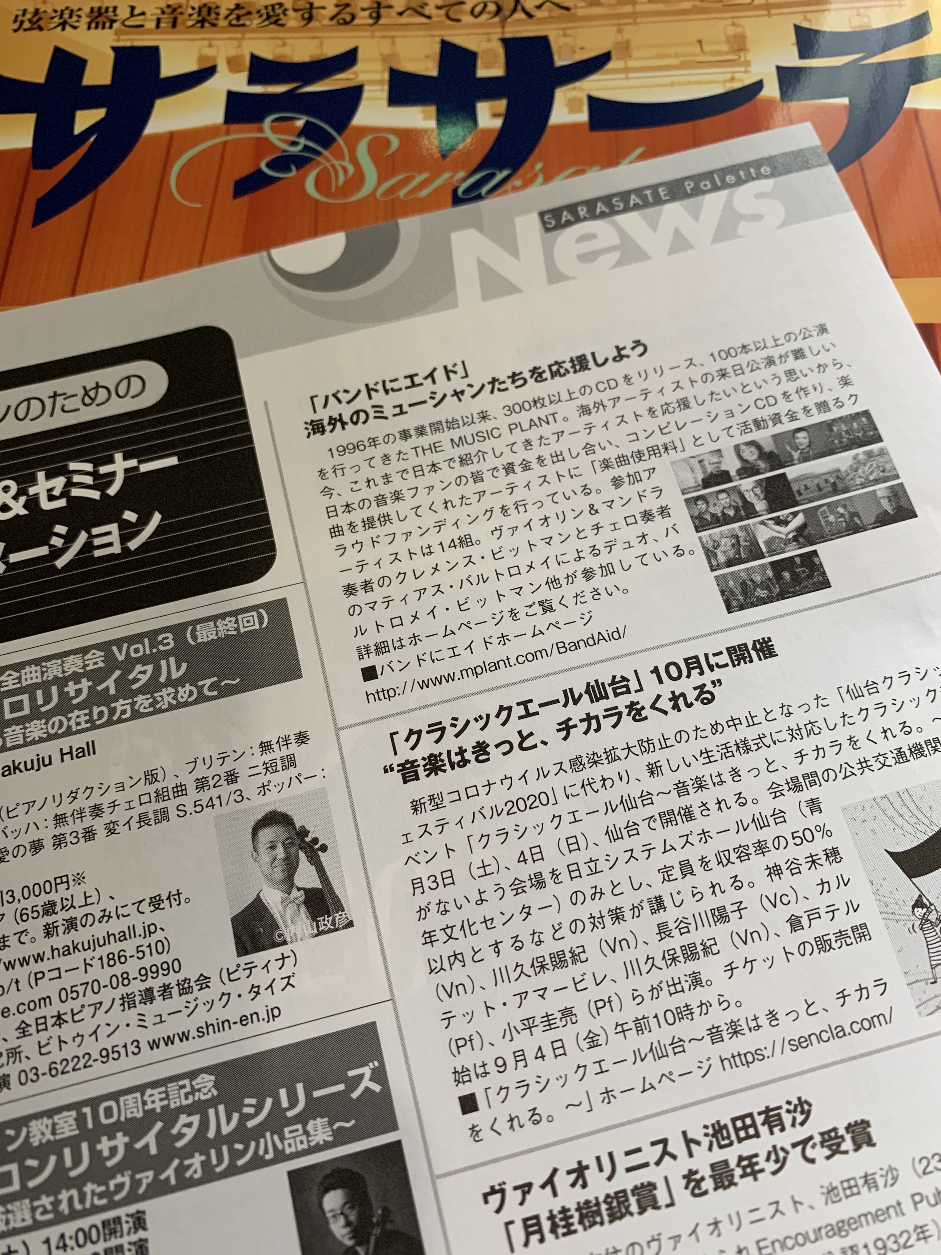 こちらはサラサーテの10月号。コラムで「バンドにエイド」ご紹介いただきました。ありがとうございます。