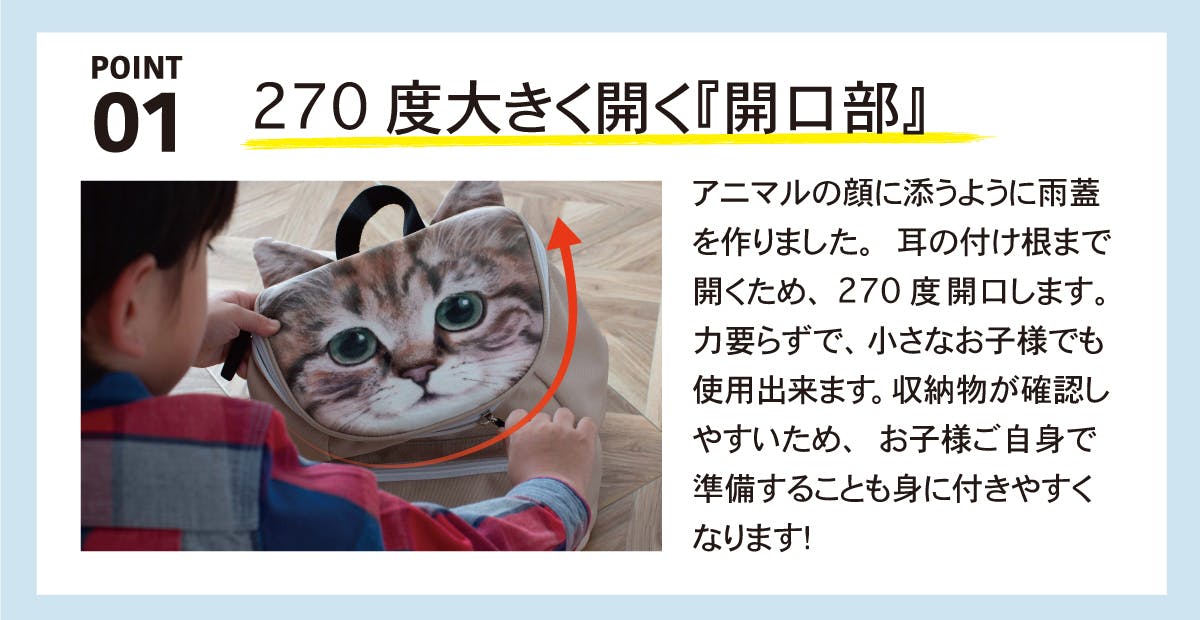 アニマルリュックは以下の点をポイントに制作しました。