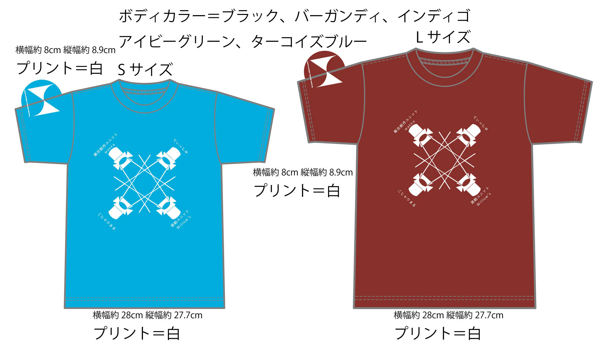 ・演劇祭記念品Bコース(5000円):オリジナルTシャツ(S・M・Lサイズ)※お色が5色になりました!こちらのリターン選択者には後日希望の色をお聞きします。