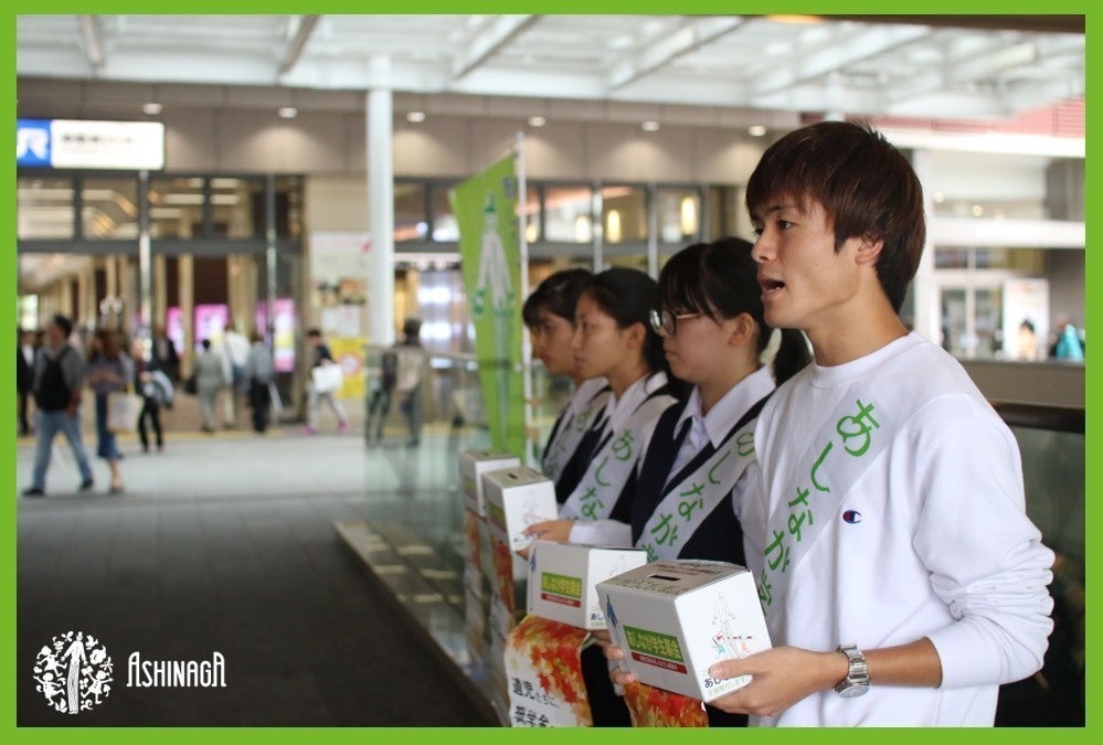 50年の歴史を持つ遺児支援のための募金運動団体で、学生だけで運営されています。毎年春と秋の4日間、全国200か所で実施している街頭募金活動では、毎回1万人のボランティアスタッフの参加があり、年間約2億5千万円の寄付を募っています。募金はすべて一般財団法人あしなが育英会へ寄付し、あしなが育英会の奨学金事業(国内学生奨学金・AAI事業)のために使われています。