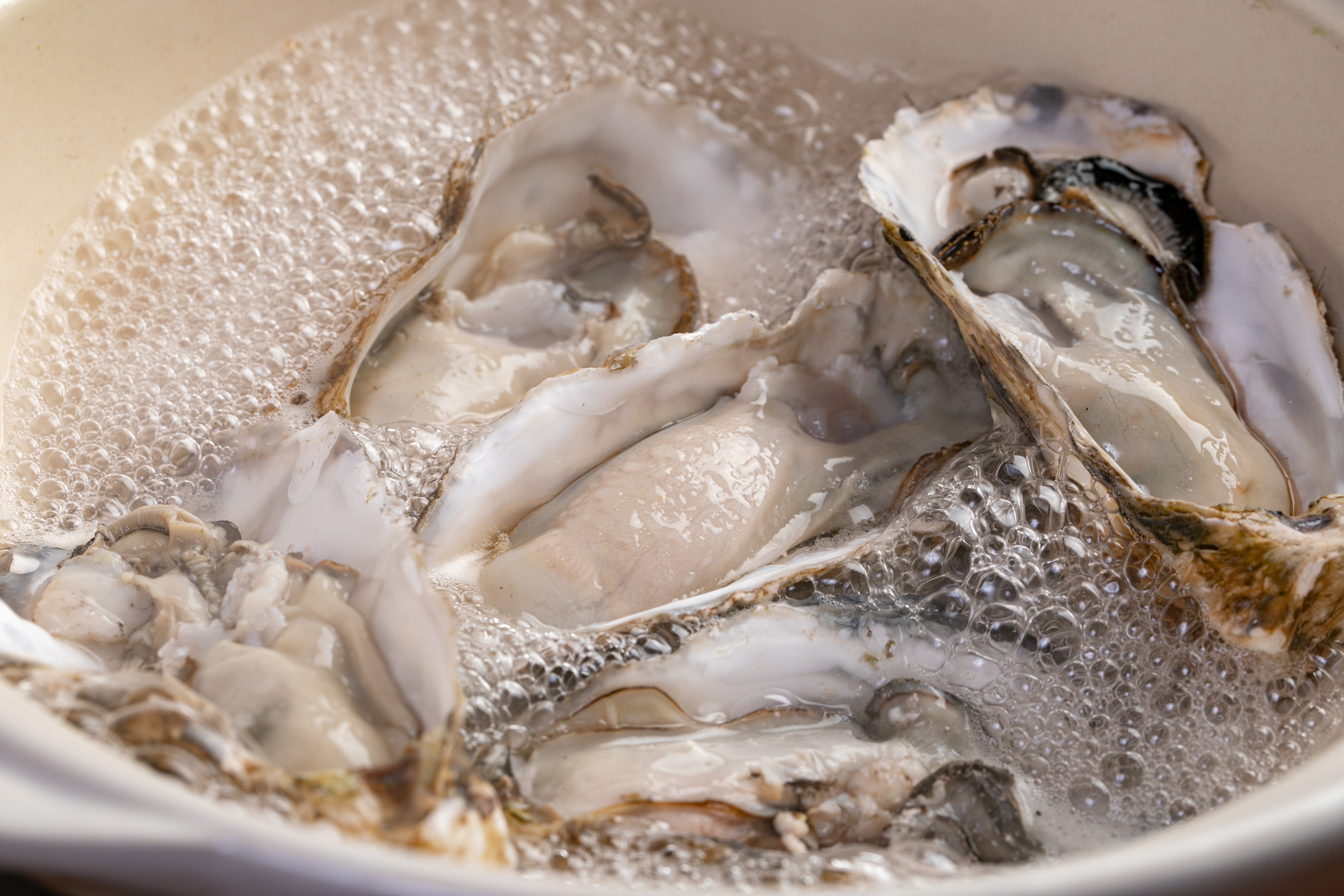 夏は1番の『旬』で殻からはみ出るくらいパンパンに身が詰まり、さっぱりとしながらもとってもクリーミーで濃厚というカキの旨さを特に感じる季節です。
