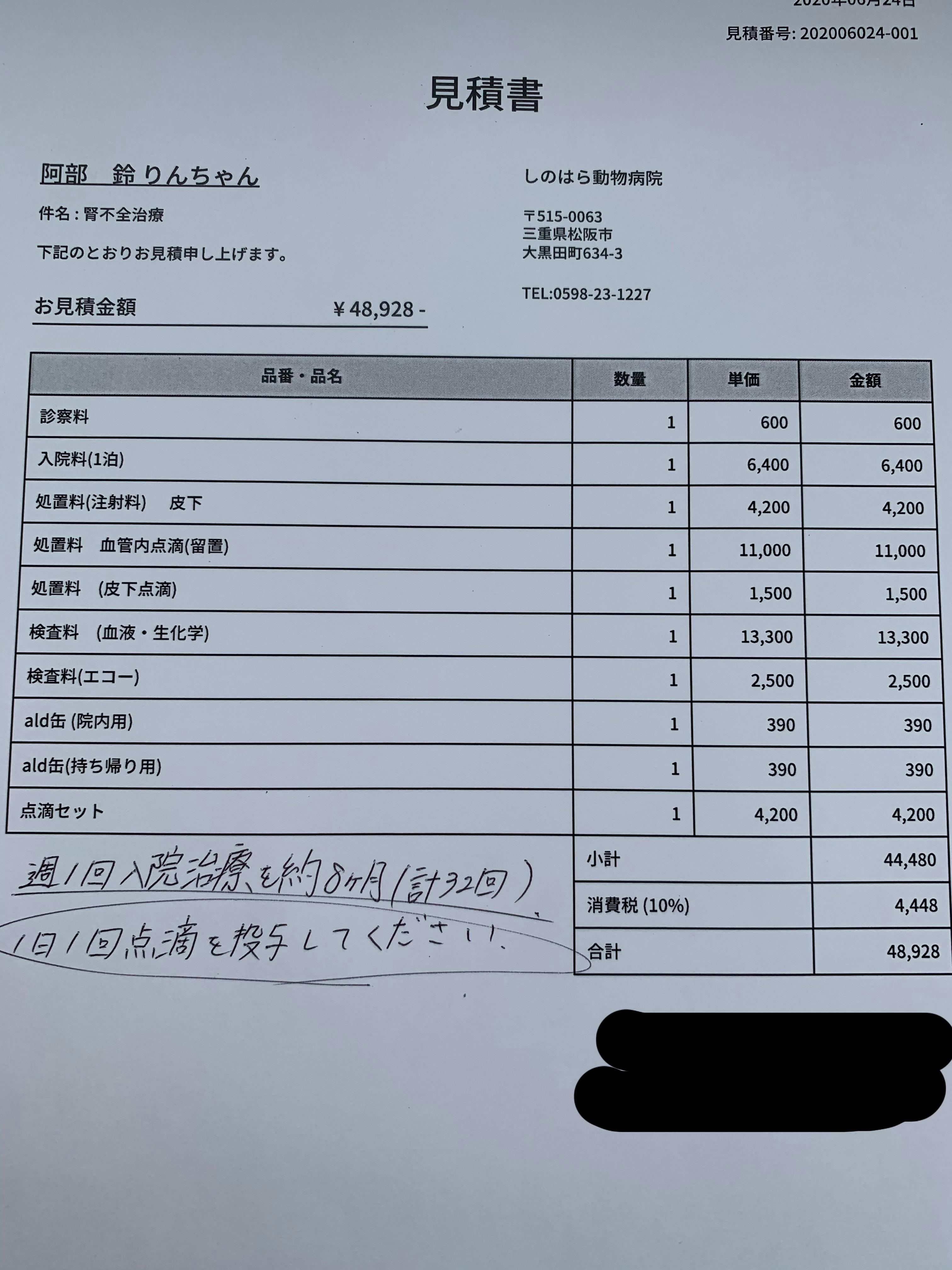 今年の5月に年もたったという事で一度健康診断に連れて行きました。そこで、重度な腎不全と診断されました。少しわかっていたもののやはりショックでした。そこでしっかりとした治療をしてあげたいと思い、今回行動に出ました。獣医さんに聞くと、生まれつきのせいもありもしかしたら治療しても完治はしない可能性もあると言われました。それでも少しでも良くなって長生きしてくれたらそれでいいと思い治療を受けさせようと思いました。