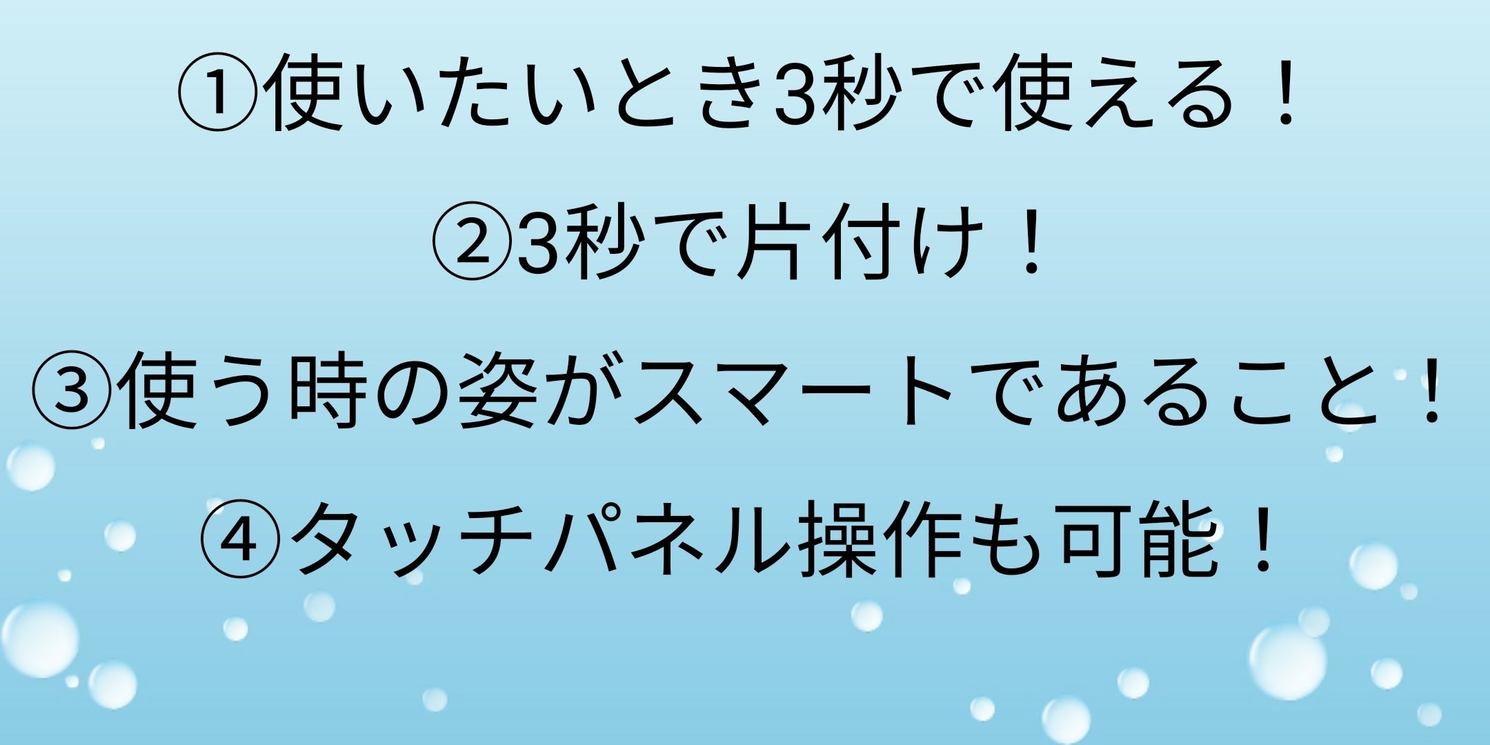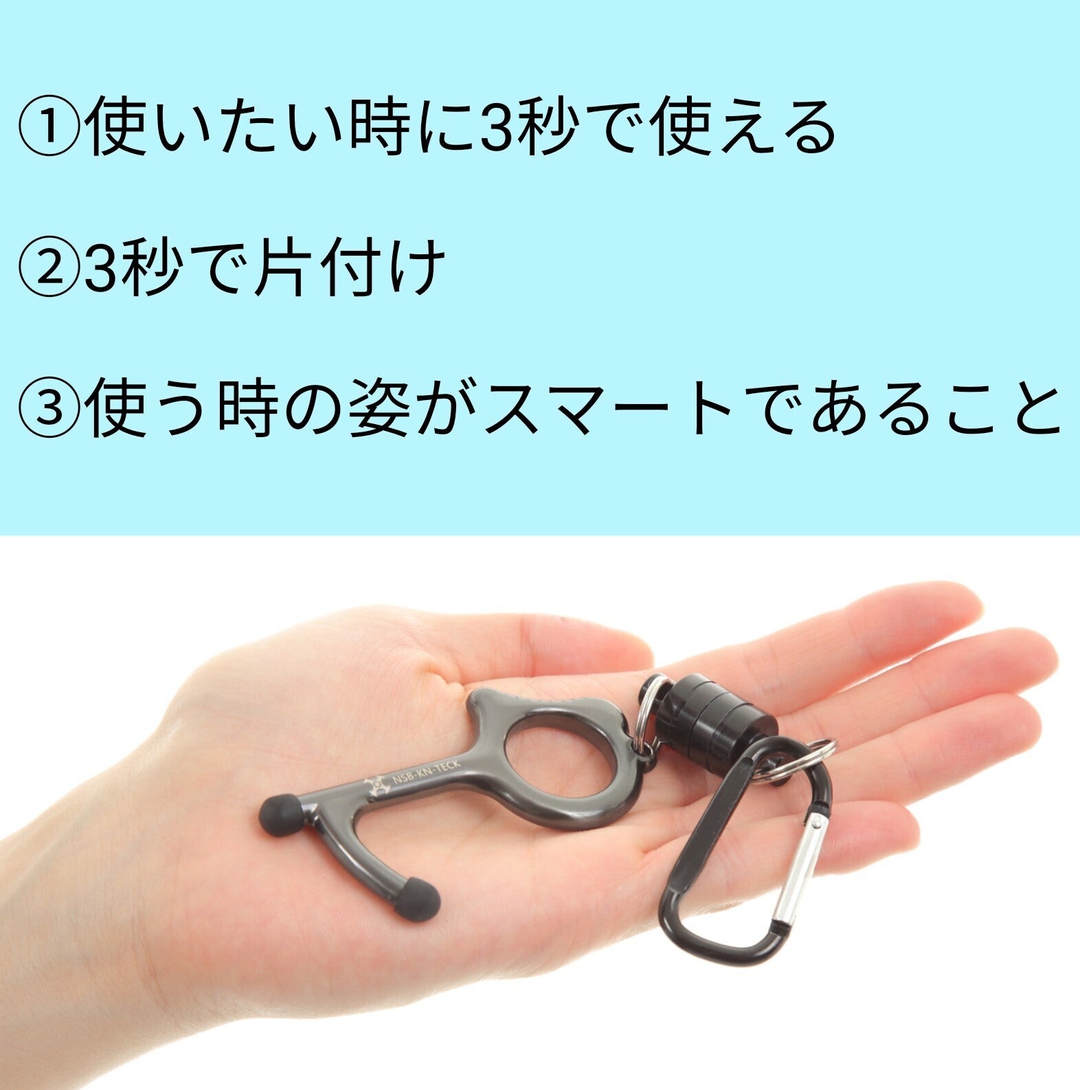 不特定多数の人が触れたであろう部分との直接的な接触を回避するために使いたい時に3秒で出せて、使い終わったら3秒でしまえることでストレスなく日常生活を送れるこれからの持ち物としてプロジェクトを起案します。