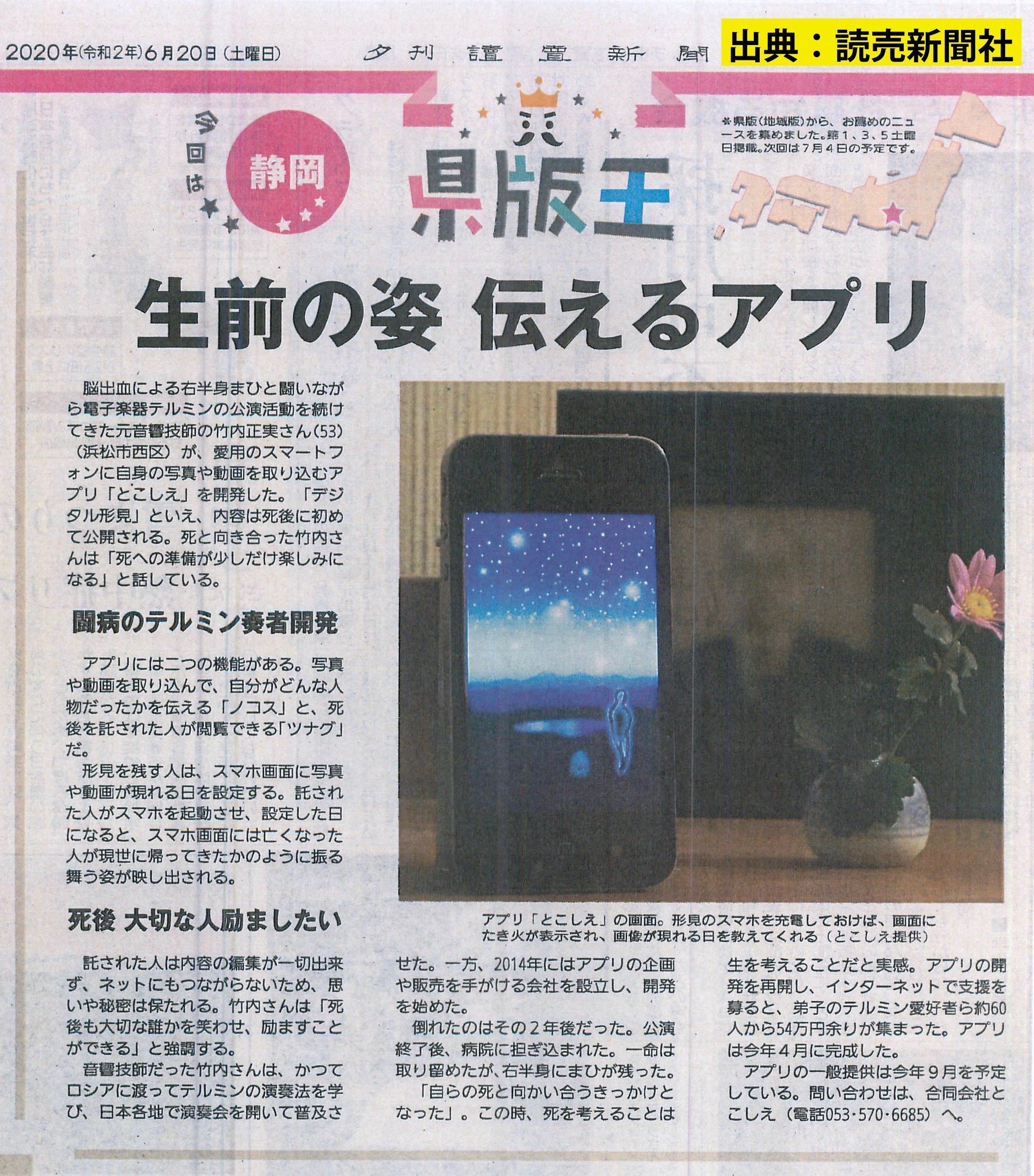 2020年6月20日付「読売新聞・夕刊」にて、「とこしえ」について紹介されています。