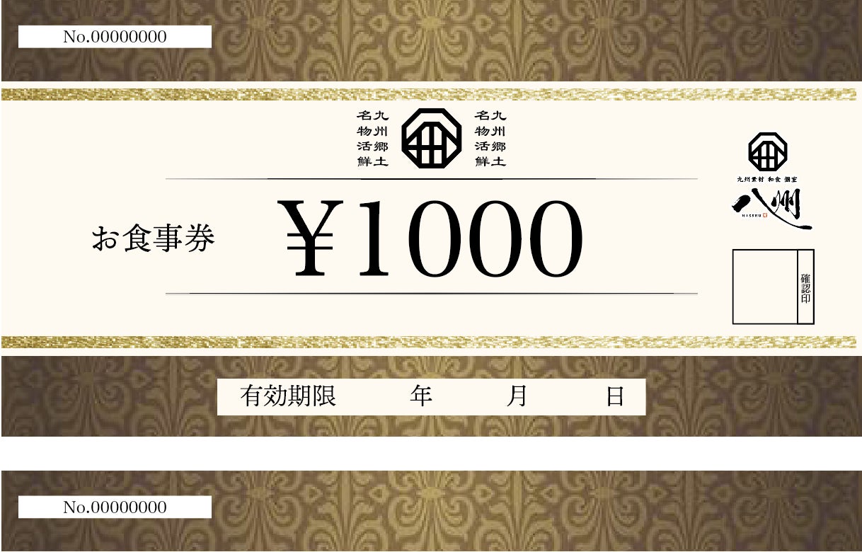 例:八州全店 店舗での無料お食事券5000円分チケット 4000円 (20%OFF)