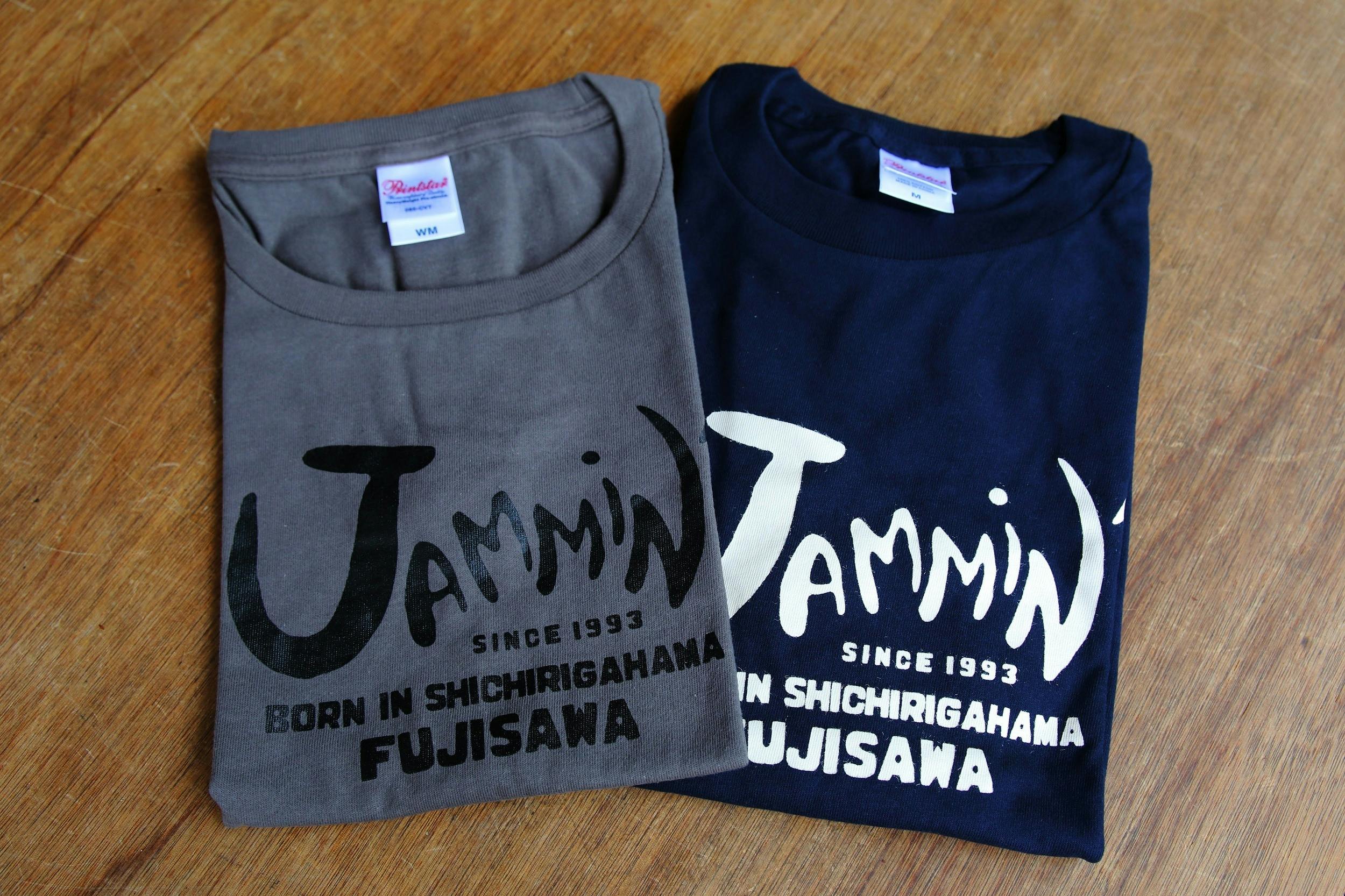 ジャミンロゴの入ったTシャツを支援して頂いた方にお届けします。デザインは、湘南で一世風靡した「SEA DOG」のデザイナー、LONGISLAND STUDIOの淳さん。開店初日からのお付き合いです。