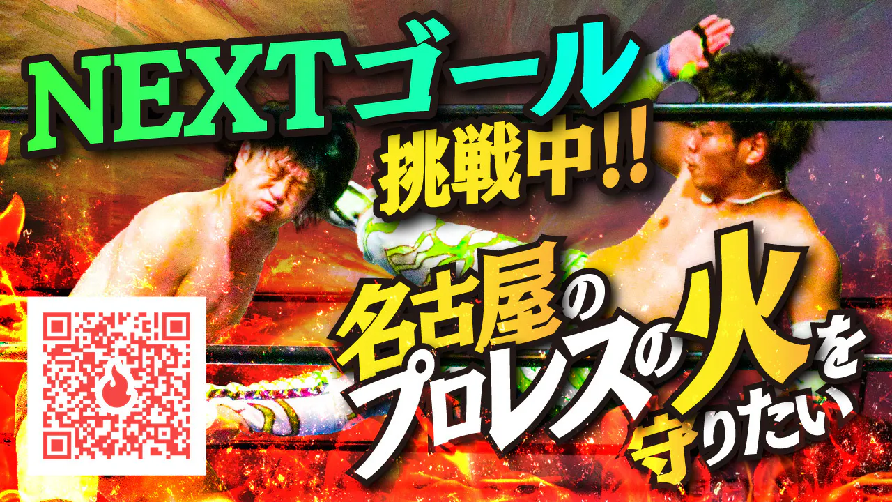 達成時は、ネットで有料配信している「水曜カレープロレス」を団体・興行が存続するかぎり永久無料でご覧いただけるようにします。様々な事情でご来場いただくのが難しい方にも、名古屋のプロレスの熱さ・楽しさを届けたいと考えてのNEXTゴール設定です。