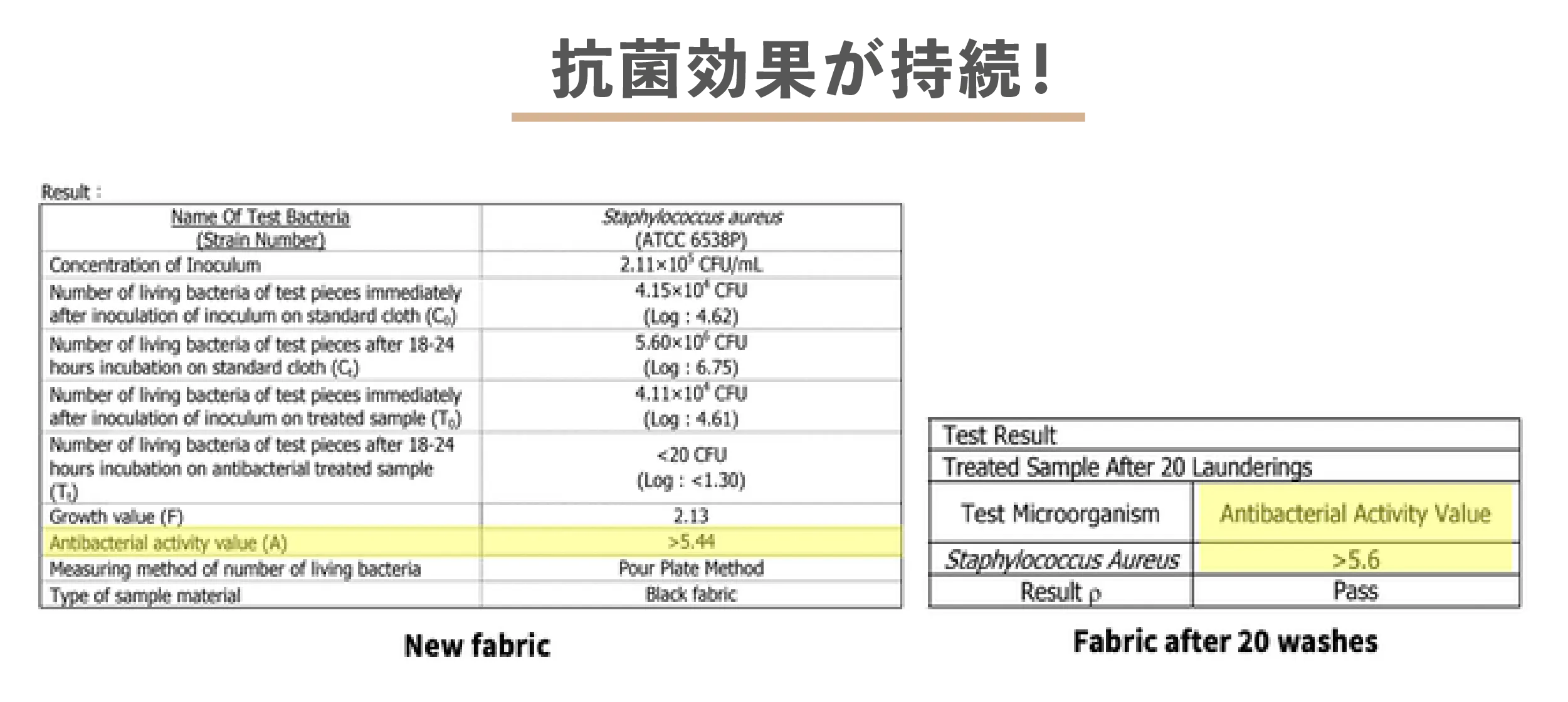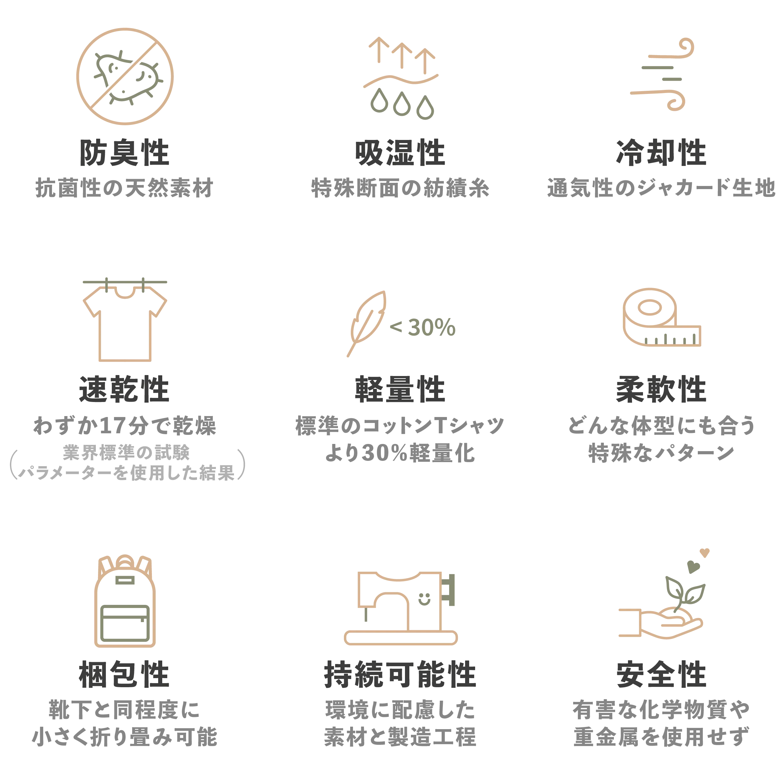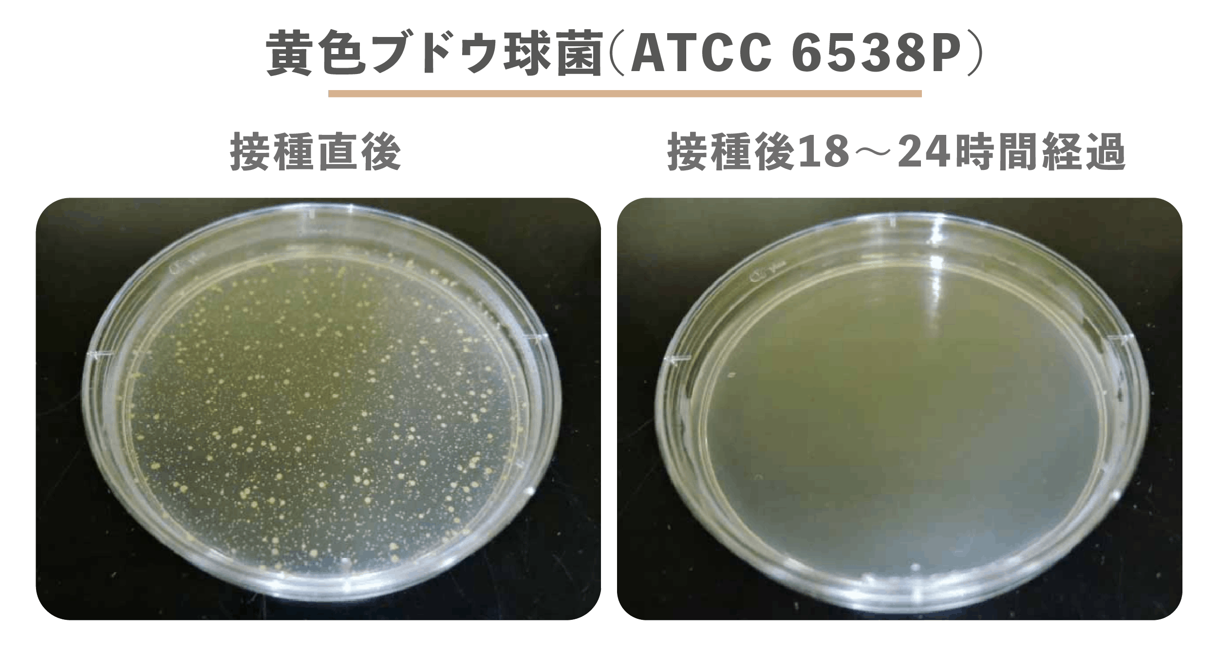 汗が臭うのは、バクテリアが汗に含まれるタンパク質を分解して、臭いを伴う酸へ変質させるためです。汗をかいても臭わないようにするには、こうしたバクテリアを皮膚から除去するか、成長させないようにする方法が有効です。当社はシナモン抽出液を加えた生地を使用して、皮膚で臭いを出すバクテリアで最も一般的な黄色ブドウ球菌の防止効果を検証しています。