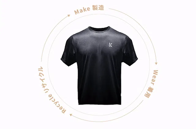 KOUP Tシャツはリサイクル品のポリエステルを使用しており、再利用が難しいスパンデックスやポリエステル綿などの混合素材は使用しておらず、リサイクルを基本としてデザインされています。