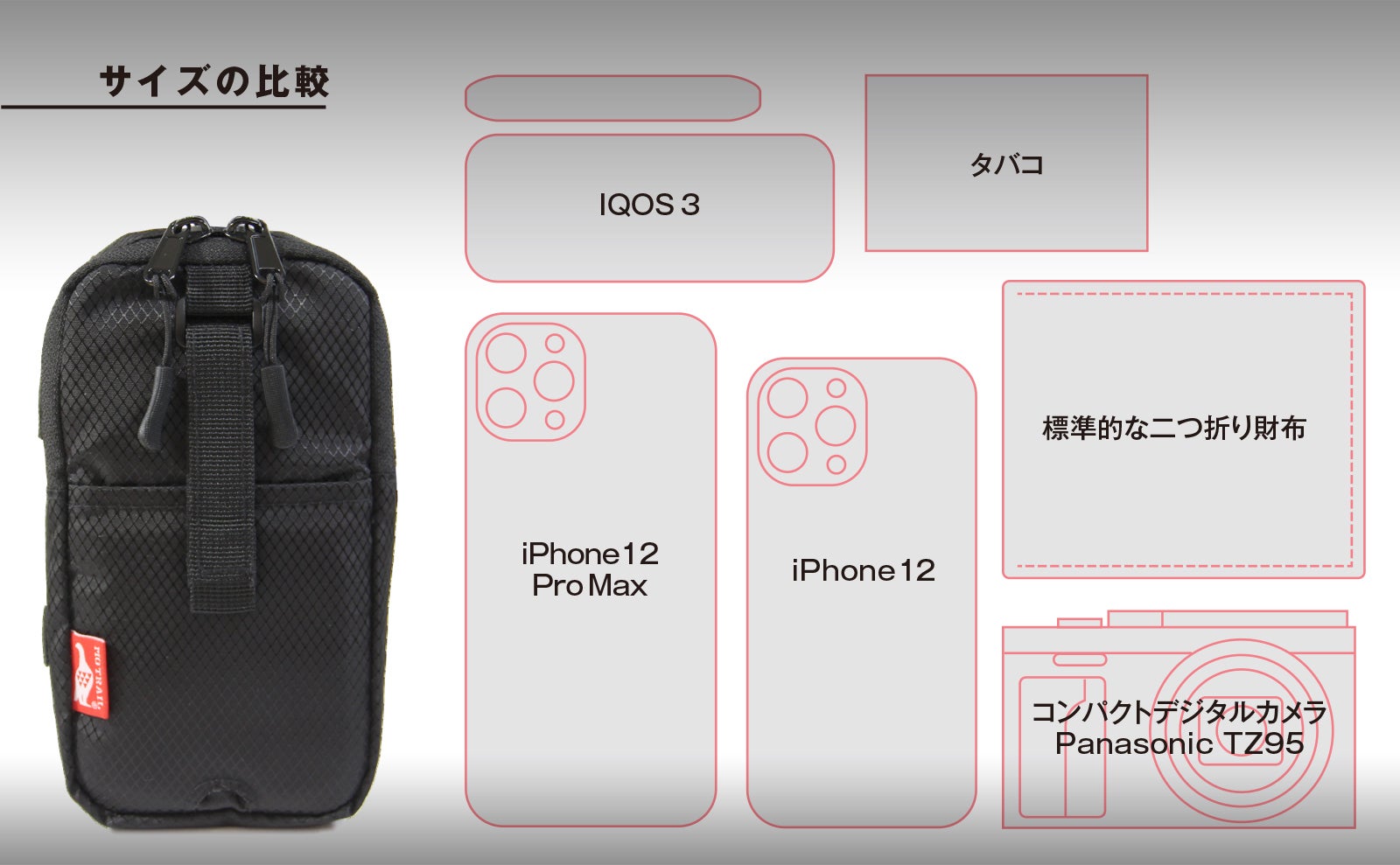 極力シンプルで使いやすく、なおかつリュックやベルトに装着できるように設計。スマホを使ったドラレコポーチとしての使用にも対応できるようにしました。
