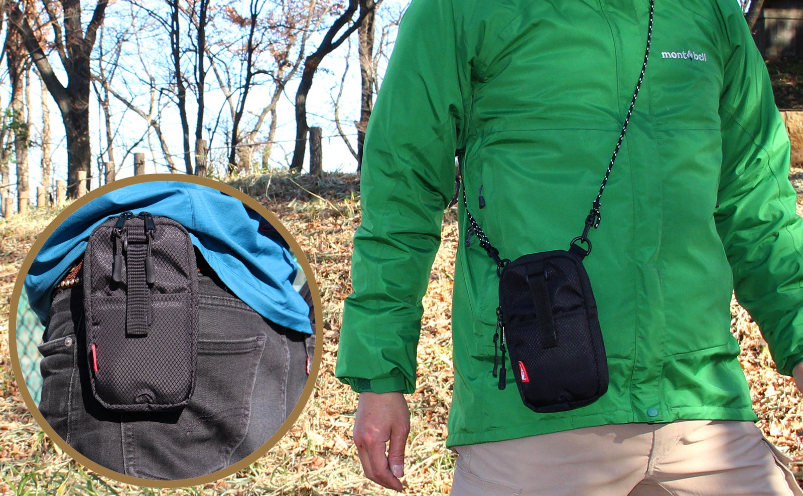 装着してみてわかる小さなポーチの携帯力。普段使うリュックからベルト、肩掛けのショルダーにも。スマートフォンから財布、喫煙具など、アウトドアだけでなく普段の生活に欠かせない様々なものを収納することが可能です。