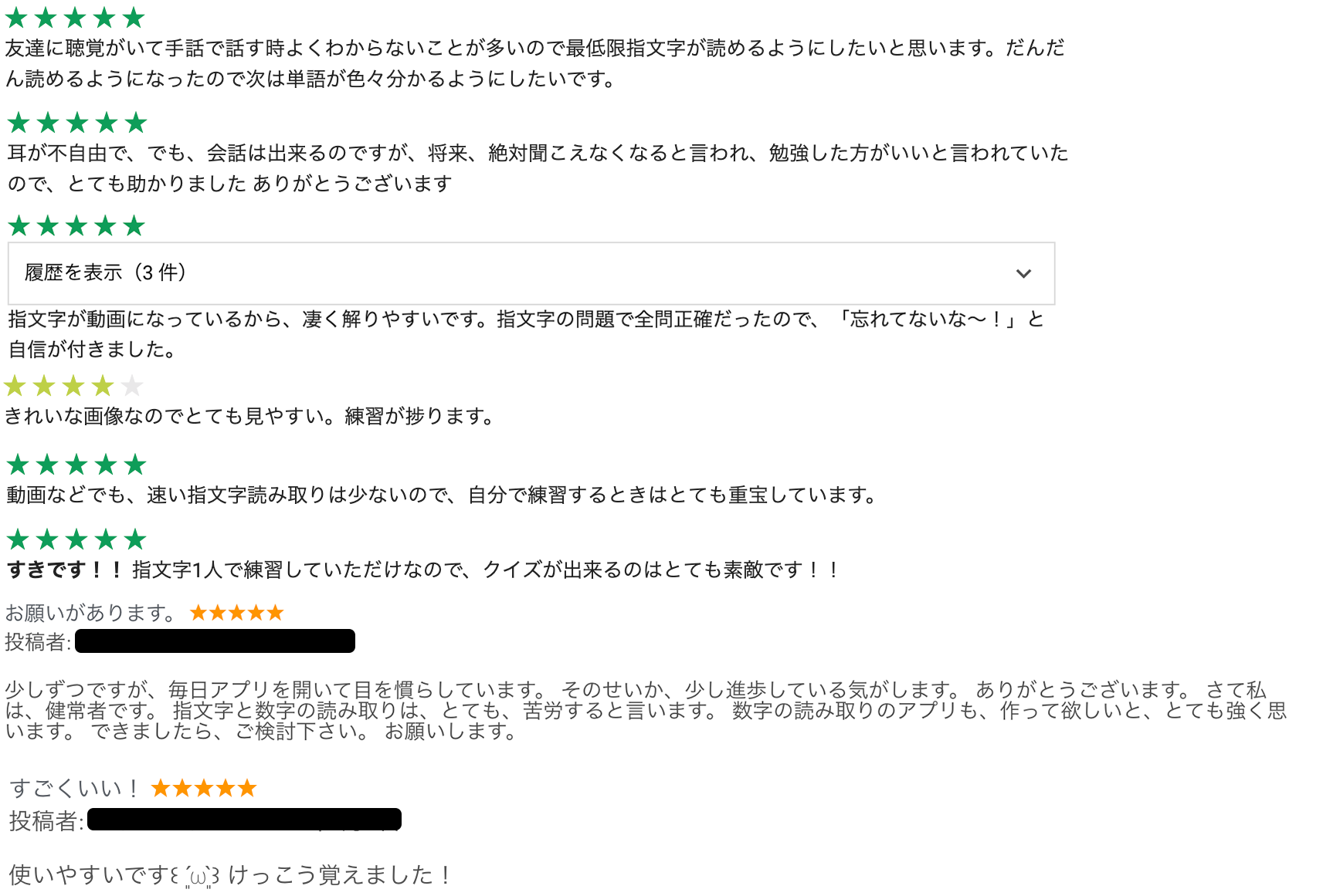 以前公開していたアプリで頂いていたレビューです。大変色々な方に喜んで使っていただいていたので再び公開したいなという思いが強くなりました。