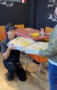 その時は、ピザを20枚ほどプレゼントしました。