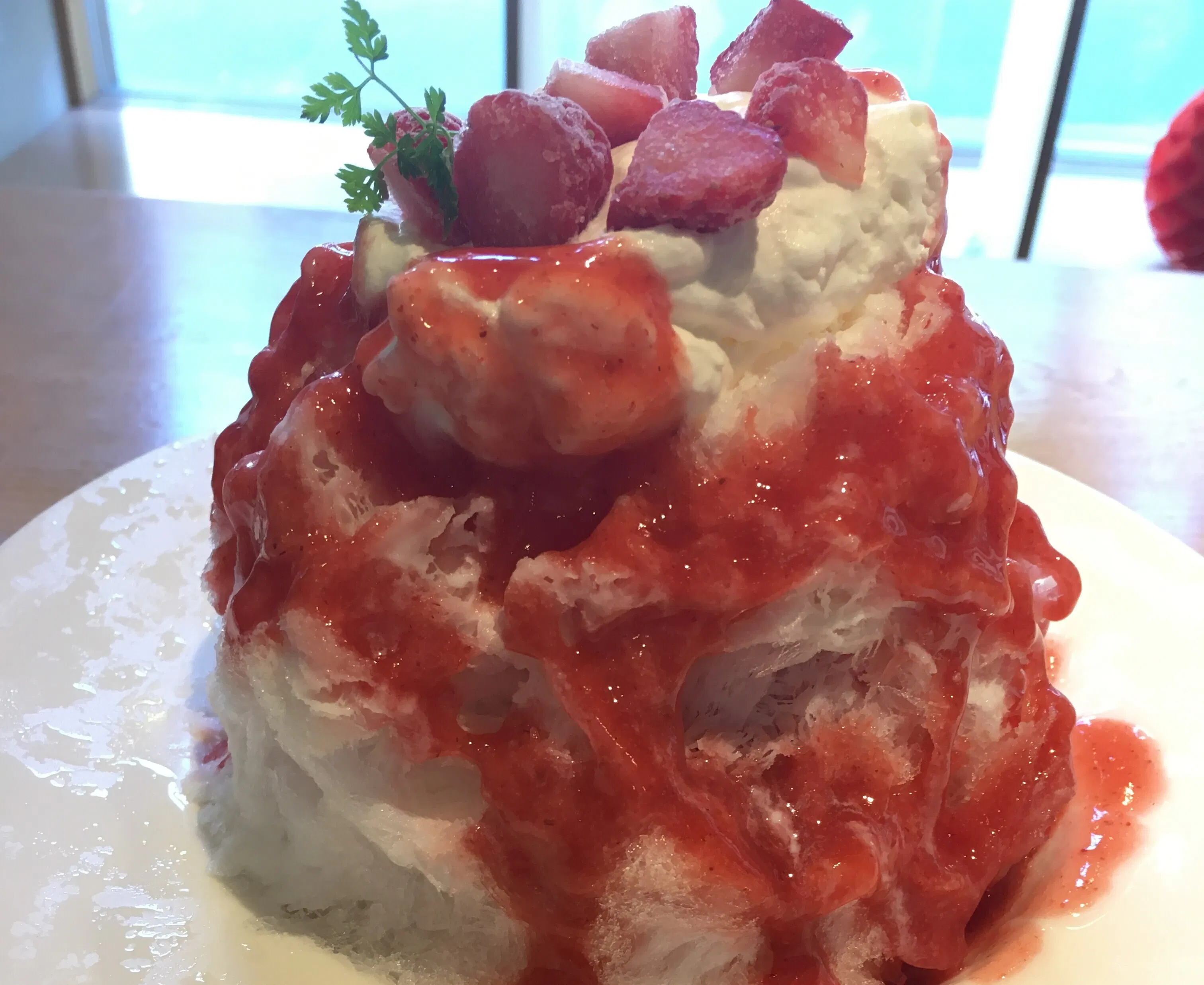 氷はふわっふわ!イチゴは、冷凍イチゴとイチゴ果肉がたっぷり瑞々しいお味。レモンはちょっとほろ苦い大人の味。どちらも、捨てがたい!