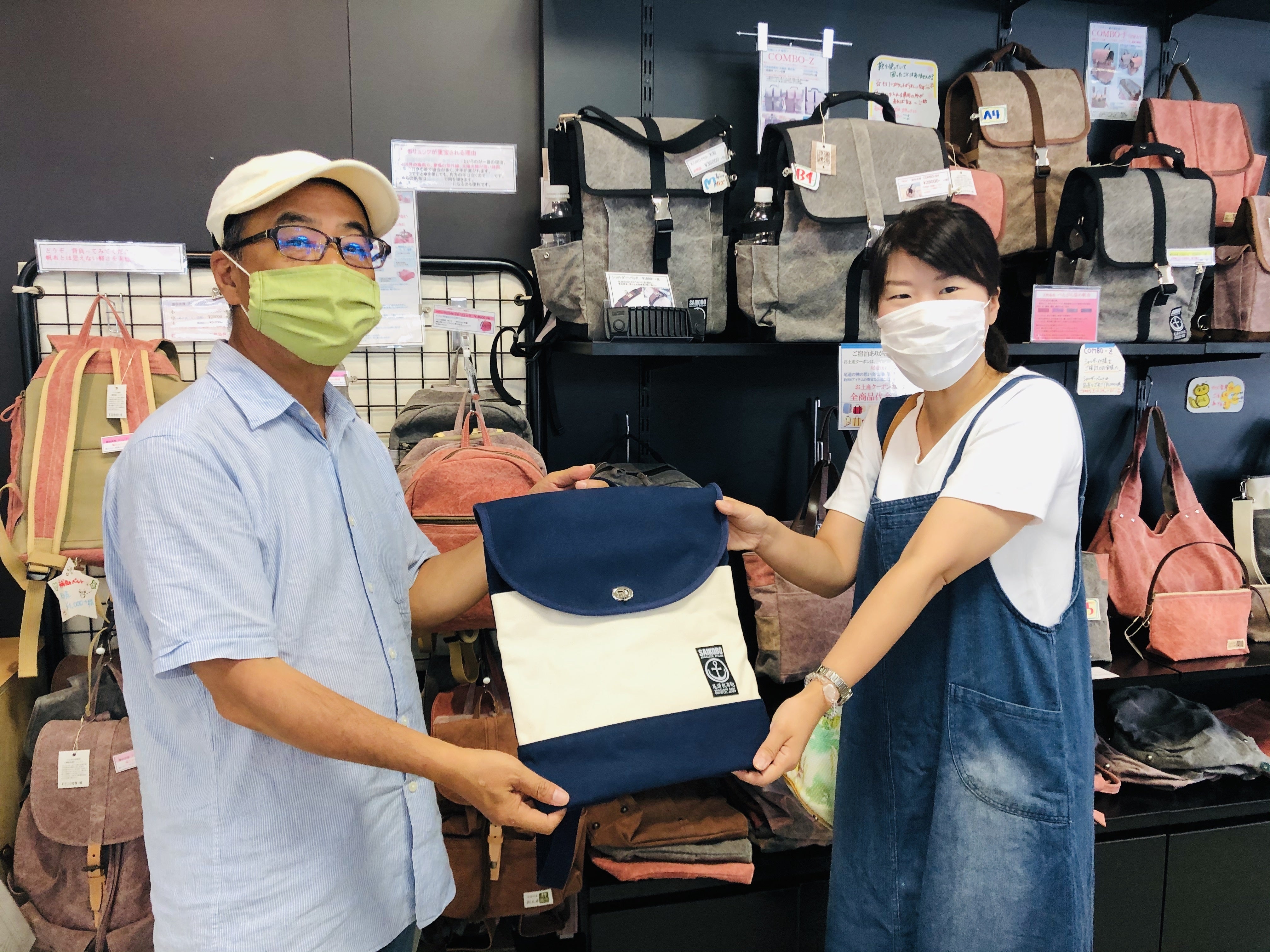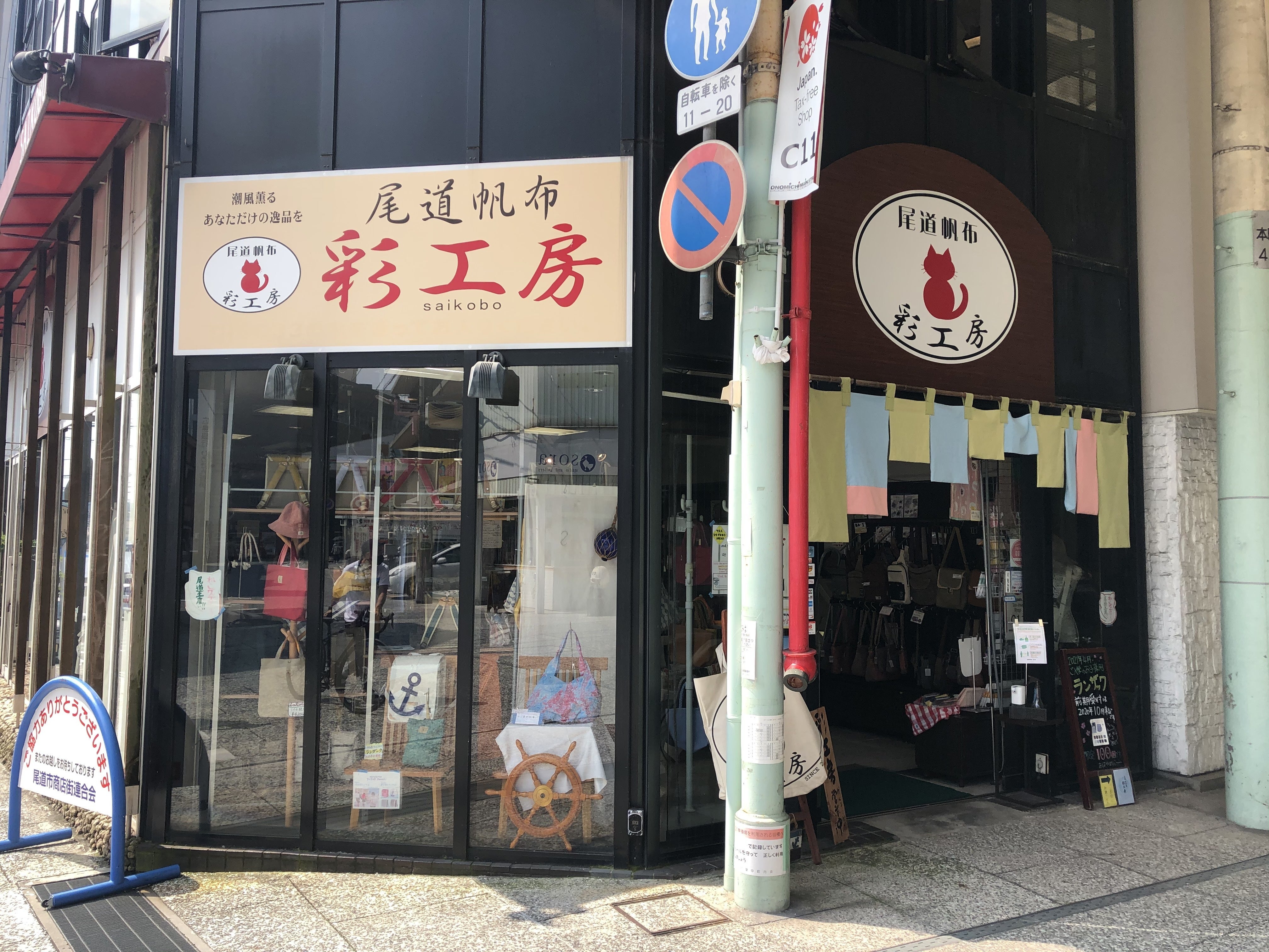今日、7月のシャレオイベントで展示させていただいた尾道帆布鞄を返却しに尾道商店街にある