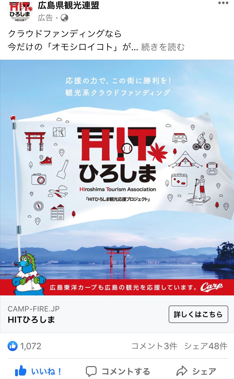第2弾HITひろしま観光応援プロジェクトは,9月27日で公開終了となりますが,引き続き,第3弾の公開を予定しており,11月末まで,広島県の観光を全力応援し,広島の街に勝利をもたらすため,疾走します!