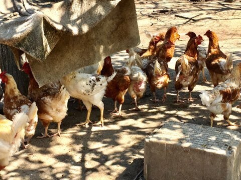 ひろ-い養鶏場では数えきれない鶏たちがコケコッコーの大合唱♬