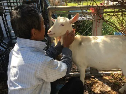 山羊は大人しい性格で,撫でてやるとすごく喜んでなついてくれました。これは,貴重な体験!