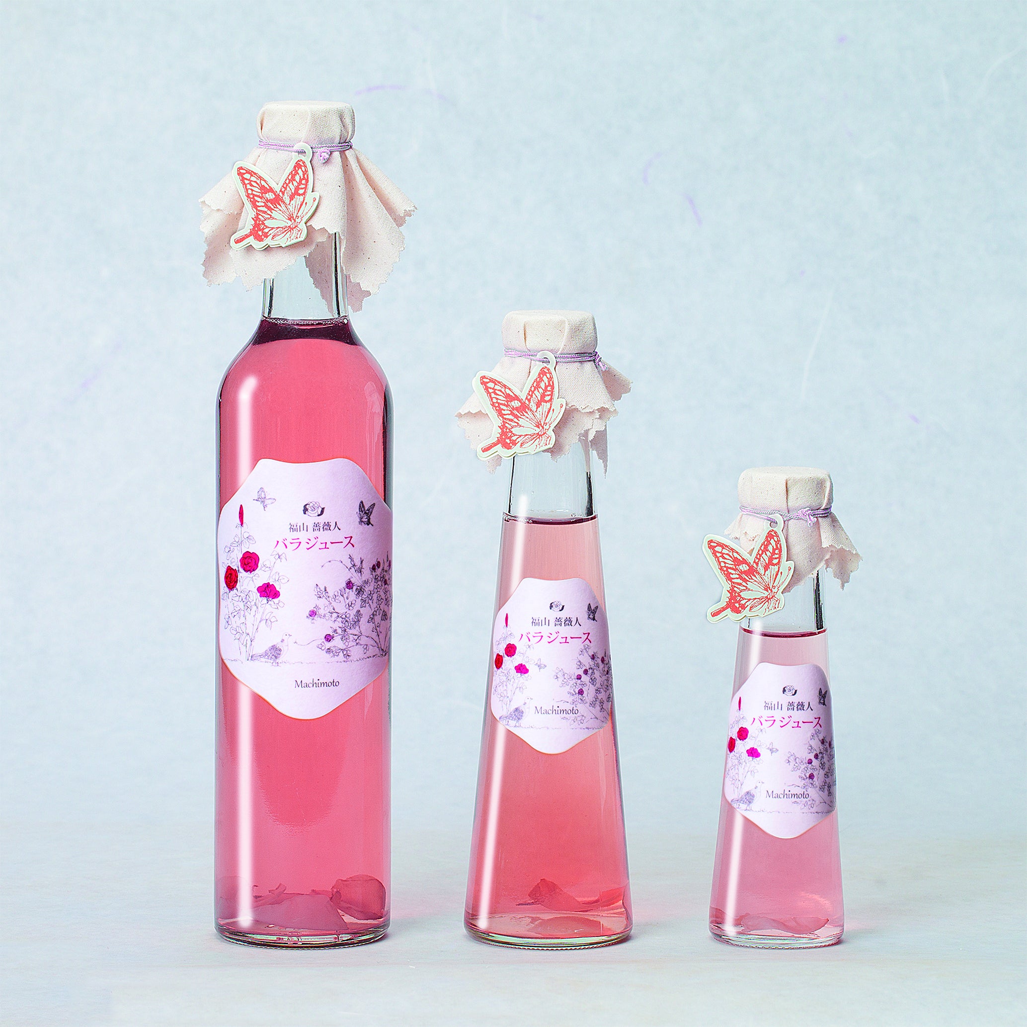 商品にはバラジュース、バラジャム、バラティー、バラアイスなどがあり、着色料や保存料、香料などを一切使用せず、安心安全な商品です。バラの香りを抽出する独自の技法は特許で、豊潤なバラの香りと爽やかな風味をお楽しみ頂けます。