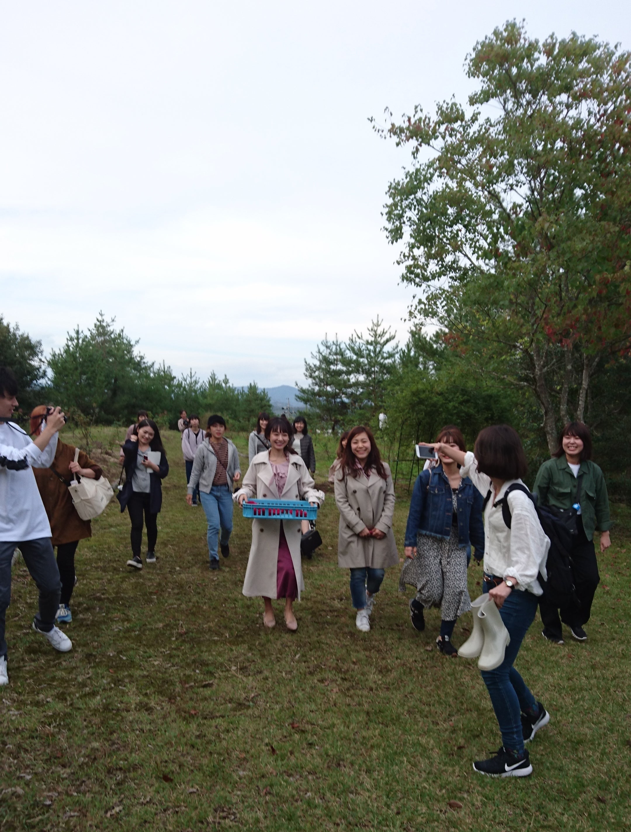 バスツアーで来られたお客様が農園で花摘みを終えた様子(10月中旬)