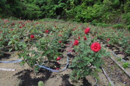 食用バラ農園は、福山市北西部の里山に位置し、約2ヘクタールの畑に6千本の食用バラを [5つのこだわり]で、”バラにここちいい”栽培を目指しています。1)綺麗な湧水を使用 2)汚れのない真砂土を使用 3)無農薬 4)有機肥料使用 5)露地栽培 です。 ビニール1枚でも被せると、バラ本来の色と香りが出ないとの思いを持っています。