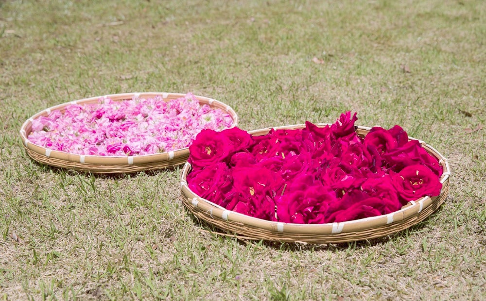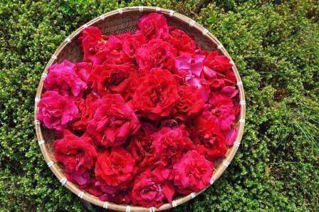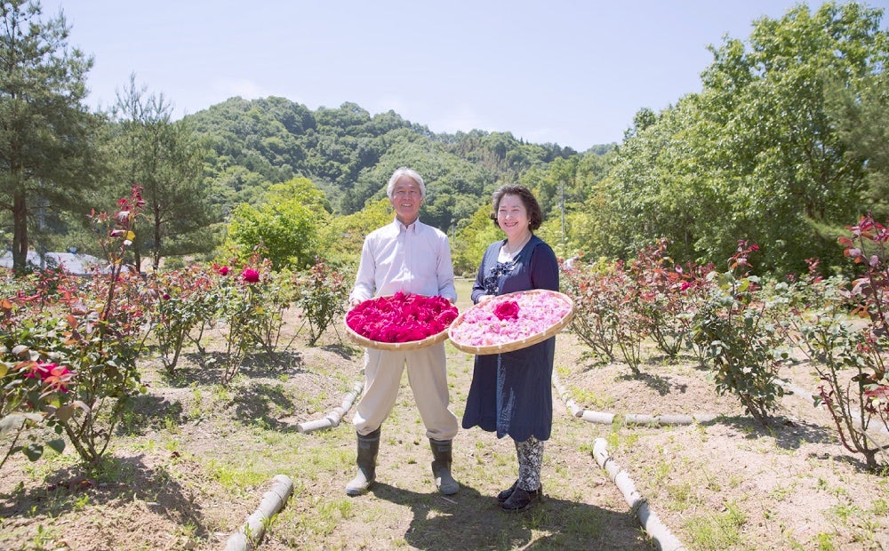 バラ商品は、朝摘みのバラを独自の製法(特許取得)で加工し、芳醇な香りと爽やかな風味をお楽しみ頂けます。加工は、合成の着色料や香料、保存料を使用せず、安心・安全な商品をより多くの方にお届けしたいと思います。