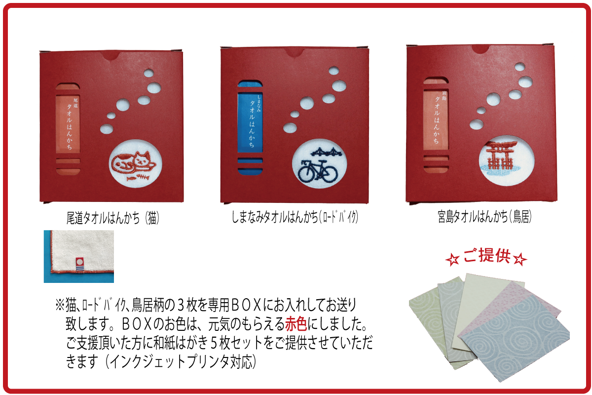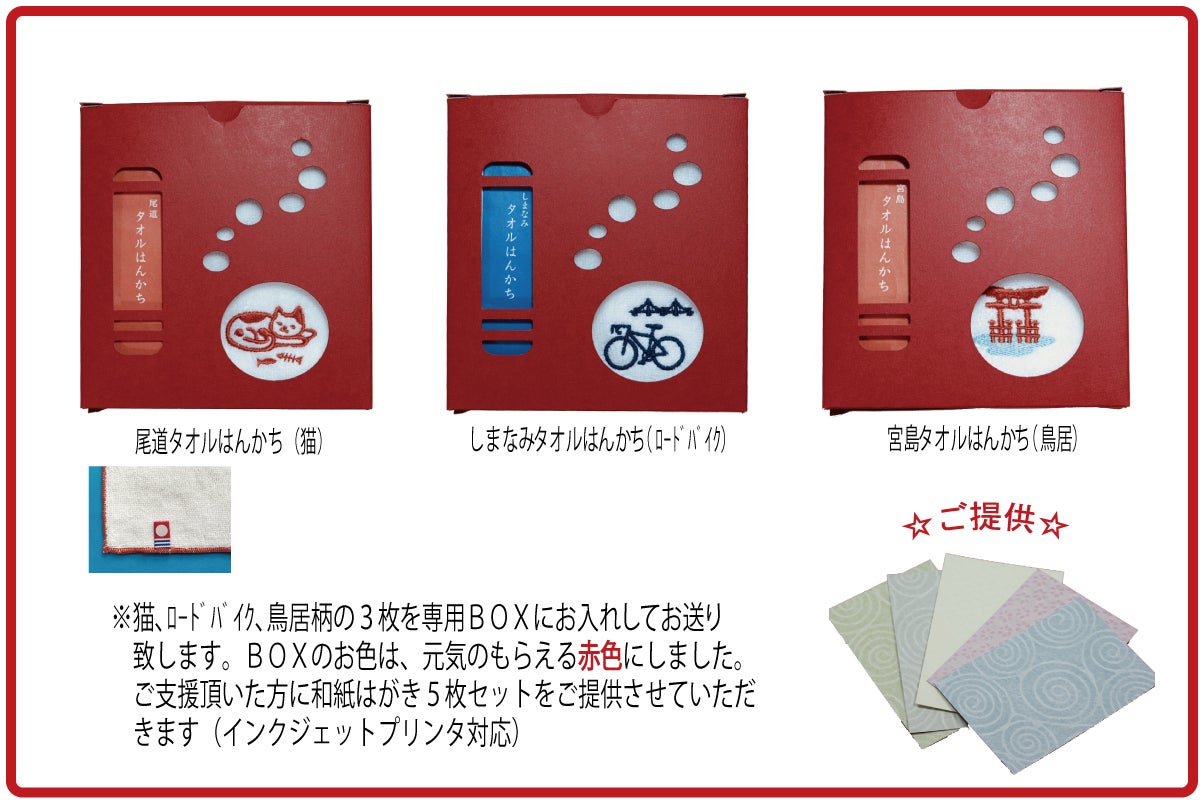 3 専用BOXに入ったタオルはんかち3枚セット(尾道、しまなみ、宮島)