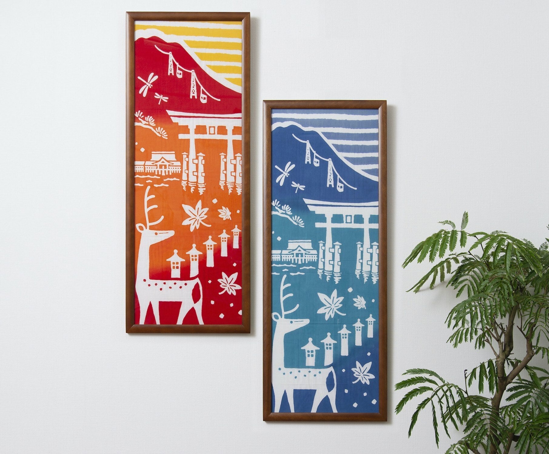 これは、福山市の(株)美工様が作られた、ぬくもりを感じる天然木の額縁に手拭いを入れてみました。