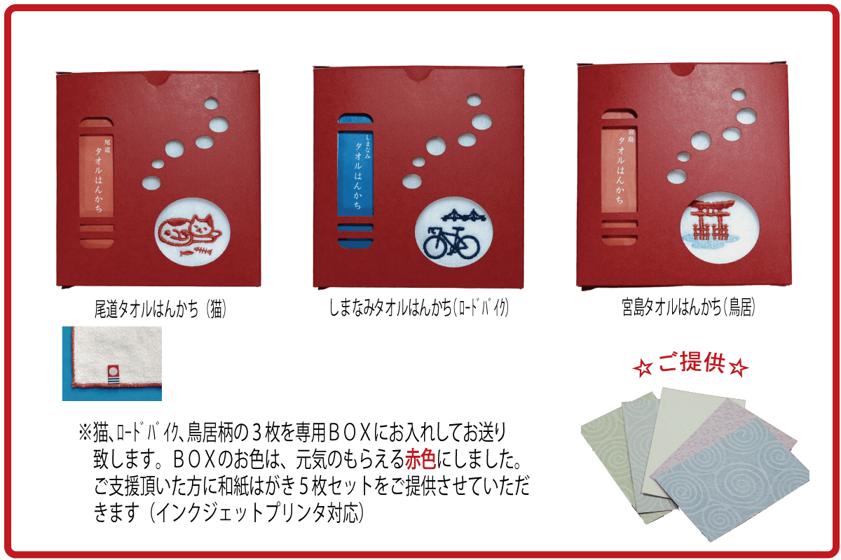 3 専用BOXに入ったタオルはんかち3枚セット(尾道、しまなみ、宮島)