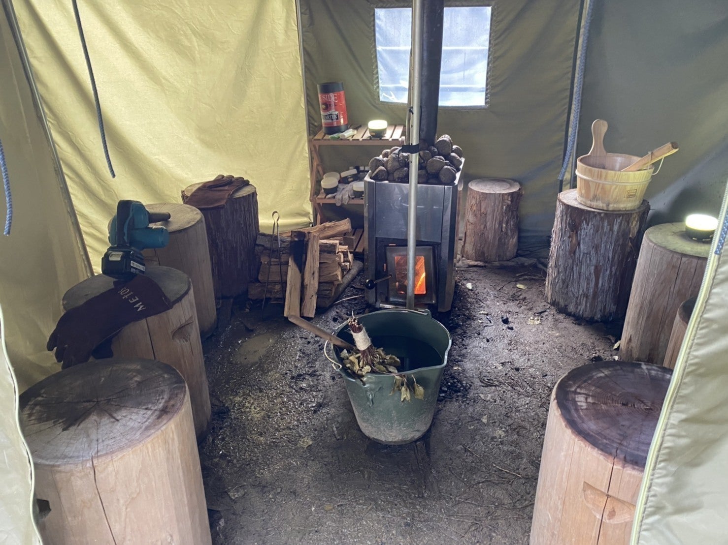こちらがそのテントサウナです!サウナの本場フィンランド製のテントは、冬場でもしっかり室内の温度を保つ優れものだそうです。