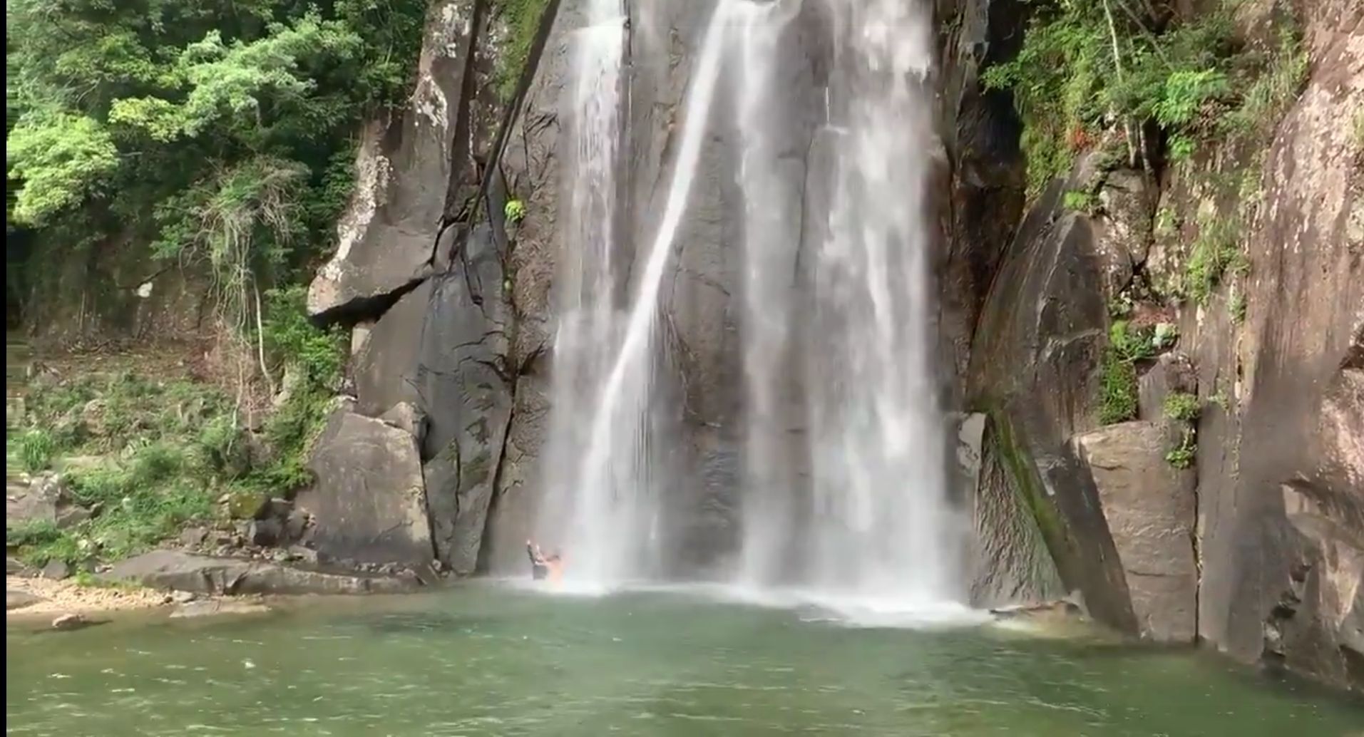 サウナストーンにアロマ水をかけ、ロウリュをすると、狭いからか一気に熱気と湿度が上がり、予想より汗をしっかりかけます。いつものサウナだと10分も入ると長く感じますが、テントサウナは色々な楽しみ方があるのであっという間に時間が過ぎます。あつい!となったらテントサウナを出て、先ほど見ていた滝へ!