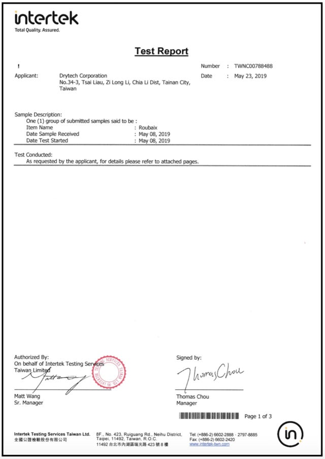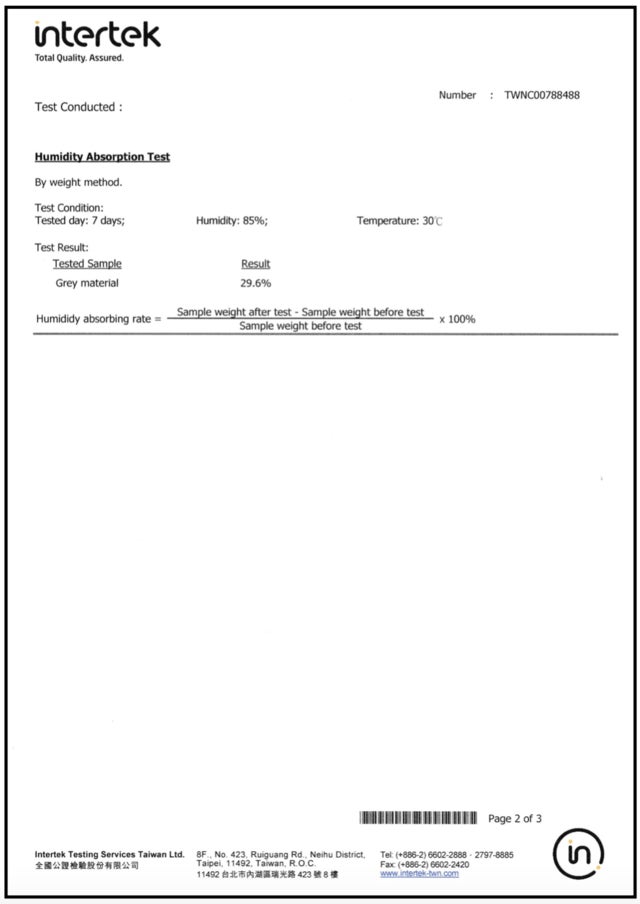 【除湿力を証明、検査機関のテストレポート】