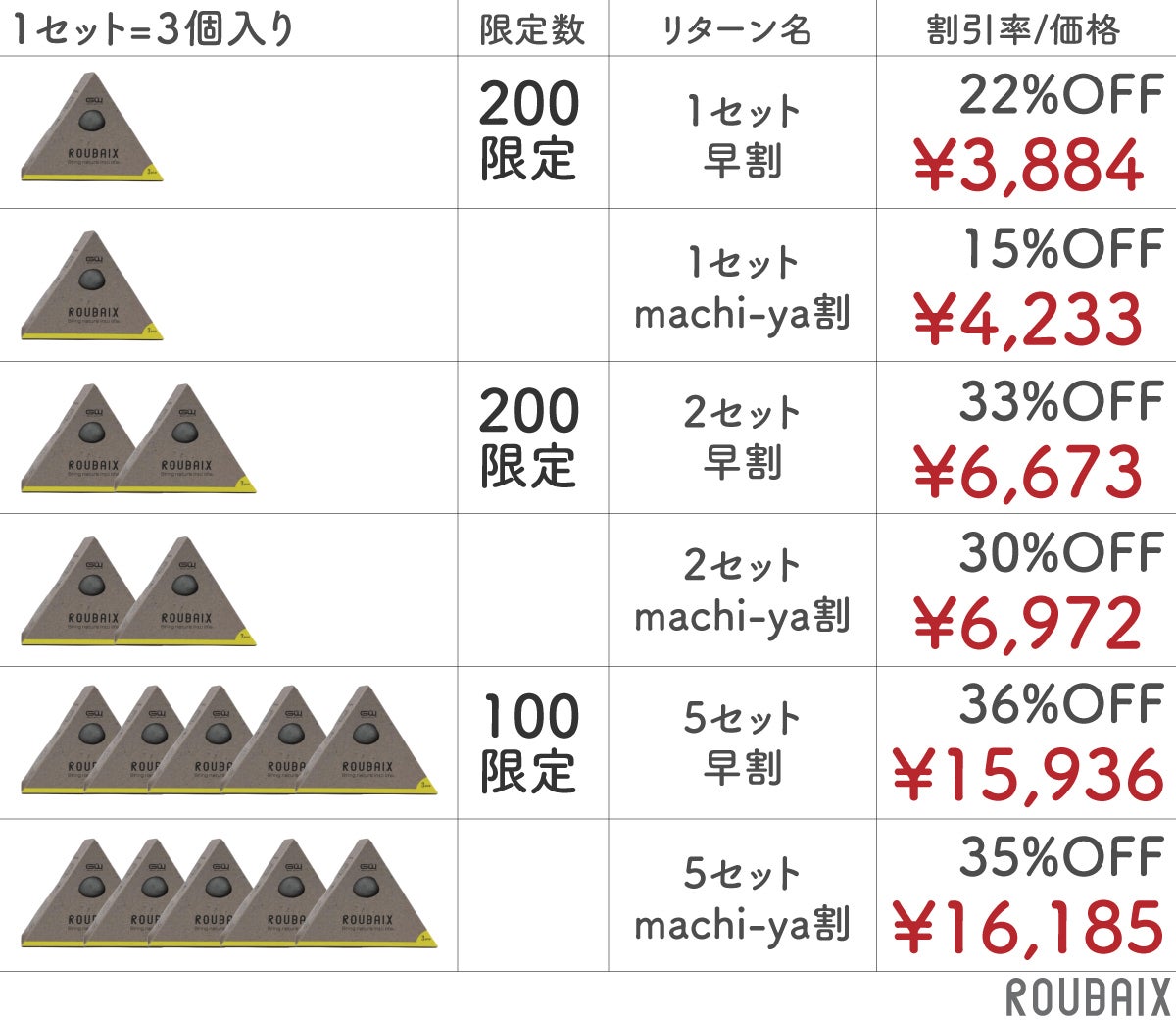 ※このような1パッケージに3個のROUBAIXが入っています。