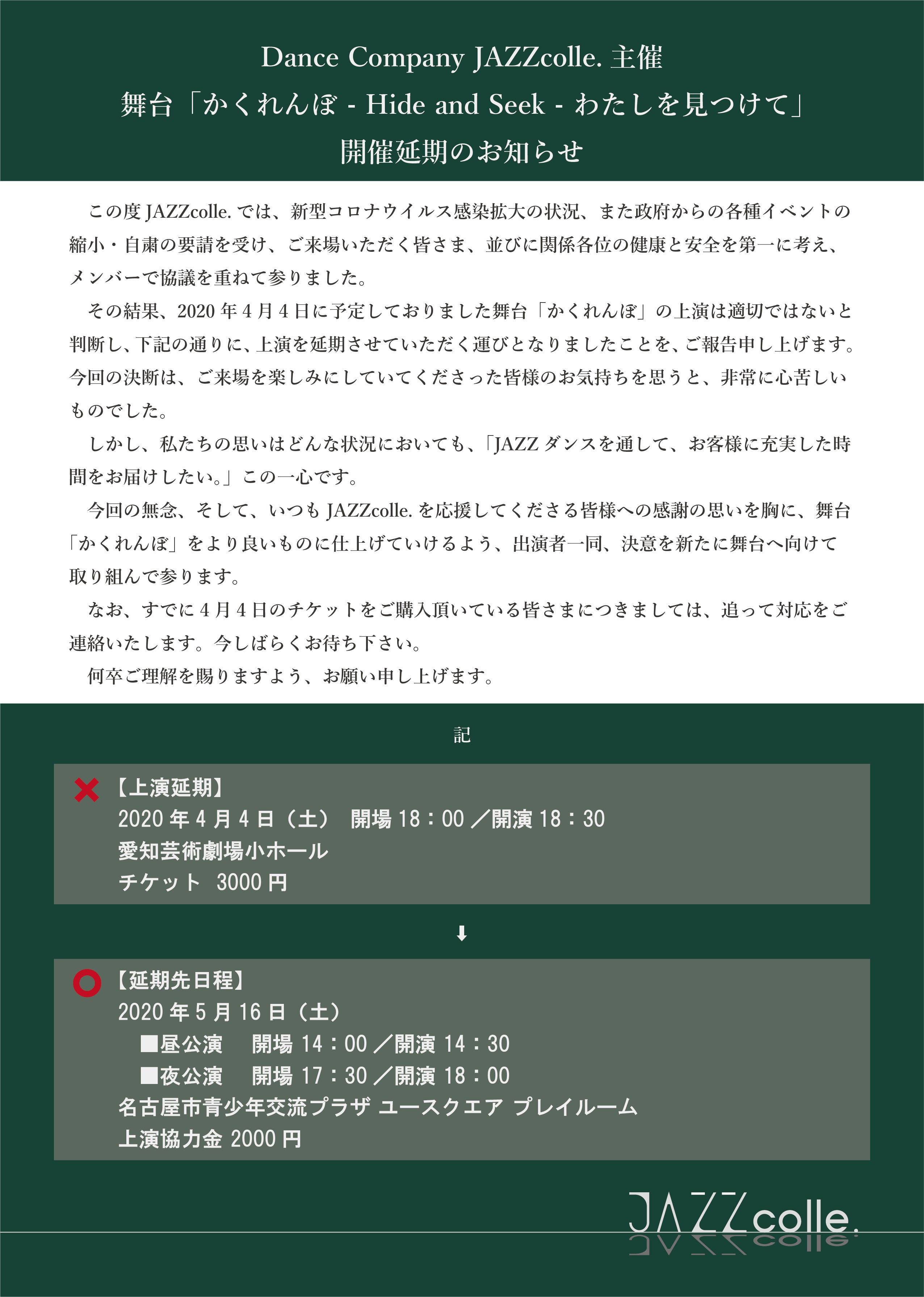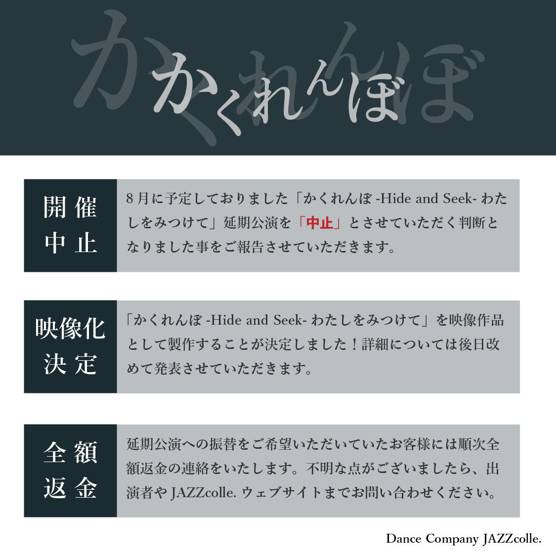 いつこの状況が変わるかも読めない中、これ以上延期をすることもできず、公演「かくれんぼ」は中止となりました。