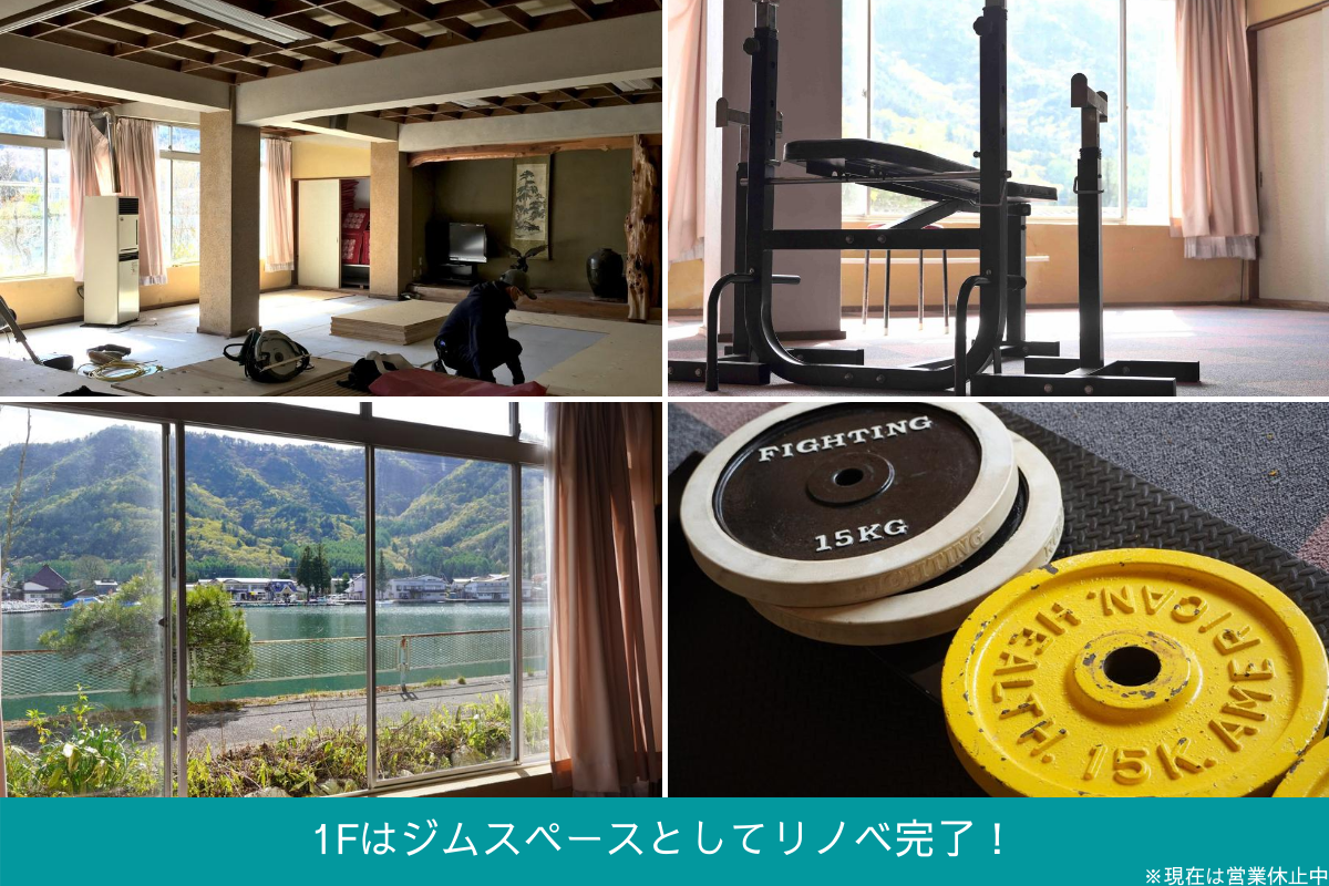 長野県の北に位置する湖、木崎湖エリアで、オーナーの代替わりに伴い、残念ながら廃業してしまった旅館。建物は古いですが、景色は絶景!この絶景を活かし、宿泊施設+コワーキング施設+トレーニングジムに生まれ変わらせようとしています。