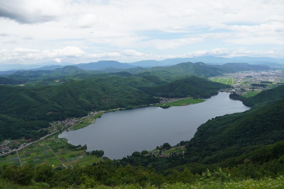 木崎湖は北アルプスの麓に位置し、スノーリゾートとして知られる白馬村と、のどかな田園地帯が広がる安曇野に挟まれた場所にあります。水質は良好で、なんと遊泳可能!釣りやボート、カヌーをはじめとするウォーターアクティビティが楽しめるのはもちろん、澄んだ水面に湖畔の木々が映える美しい湖です。