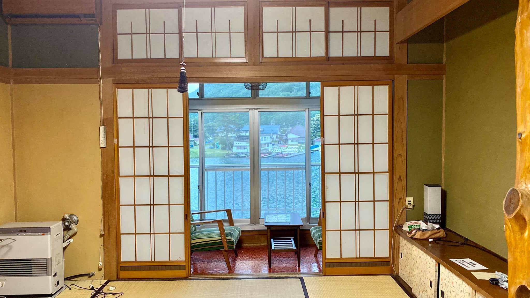 畳に障子と、純和風な作り。各部屋の窓からは湖が見渡せる絶好のロケーション。こんなに素晴らしい景色が見れるのに、廃業してしまうなんて本当にもったいない!