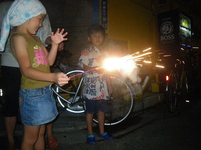 ゲストハウスの前で花火してみたり