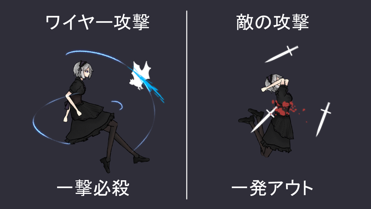 ゲーム制作者のIzukawaNと申します。これまでに、「メイドさんがワイヤーで飛び回る」系のゲームを作ってきました。