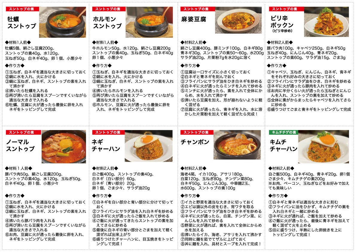 これらのチゲの素があれば、お店と全く同じ味の料理を作ることが出来ます。またチゲ素を使っていろいろな料理も作ることが出来、そのレシピもお付けしてあります。賞味期限も長いので、冷蔵庫に常備していただければ、いつでも手軽に辛さと旨味の効いた美味しい韓国グルメを作ることが出来ますね!