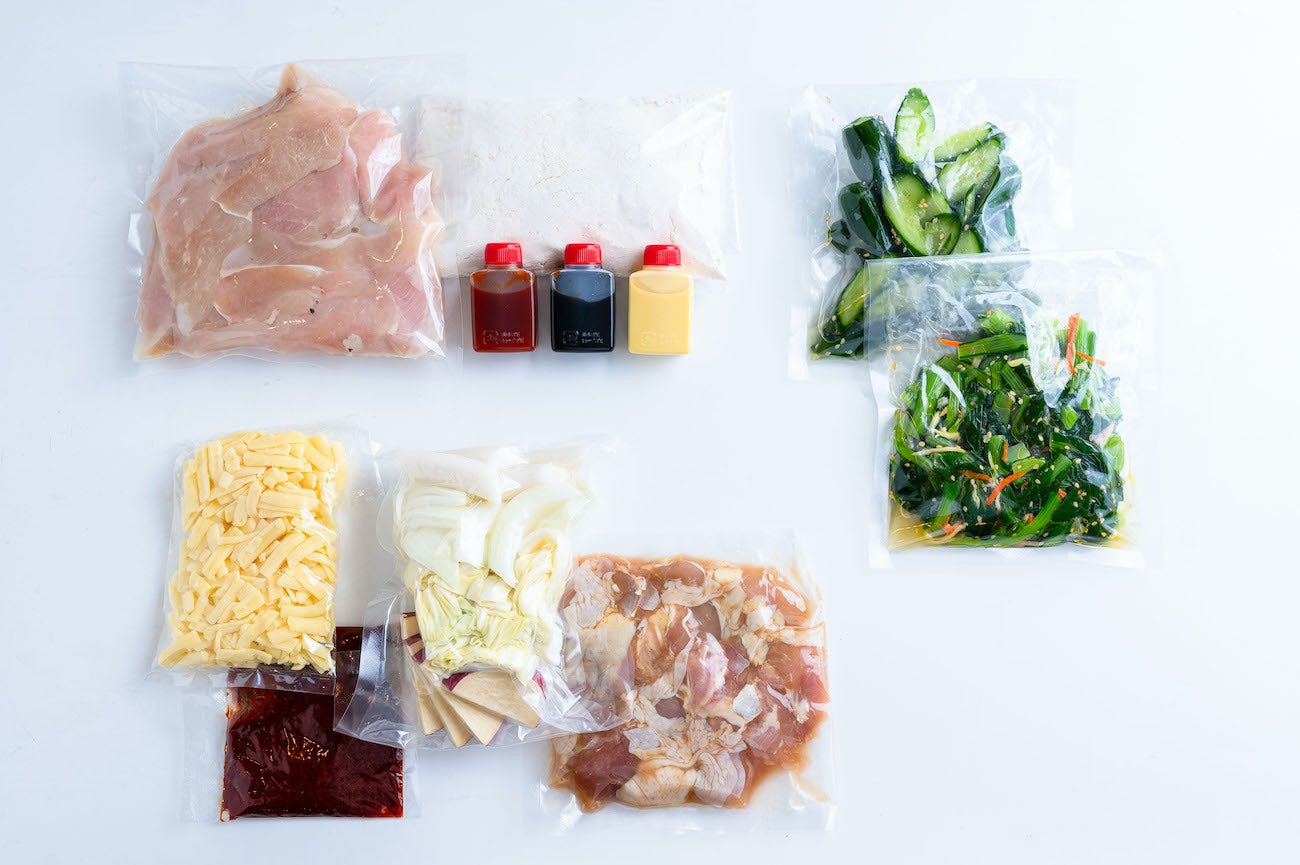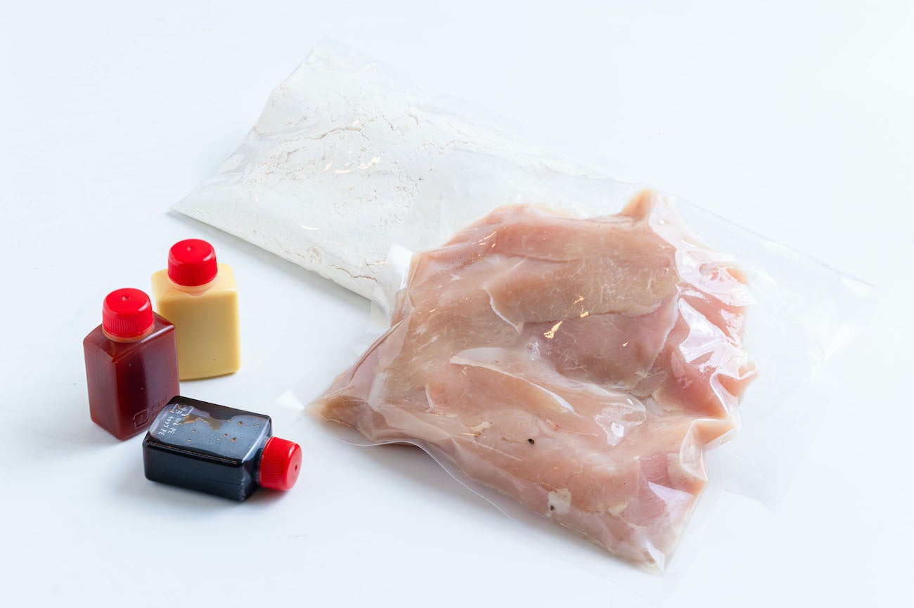 ・韓国フライドチキンミールキット:お肉500g付き(下味をつけたお肉、パウダー、ソース3種付き、レシピ通り調理してください。)