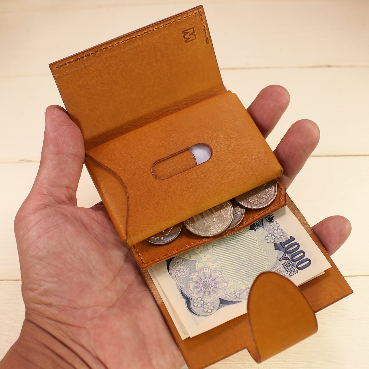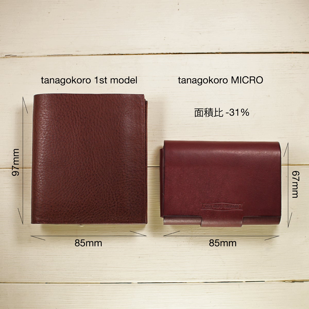 たなごころという名に相応しいサイズ感。まさに手の中。前回の1stモデルよりも、さらにコンパクトになった" tanagokoro MICRO たなごころマイクロ "。現金よりもキャッシュレス、スマホ決済もしているなら、財布のサイズはこれで十分。たくさん収納するのではなく、必要なだけ。使う分だけ。