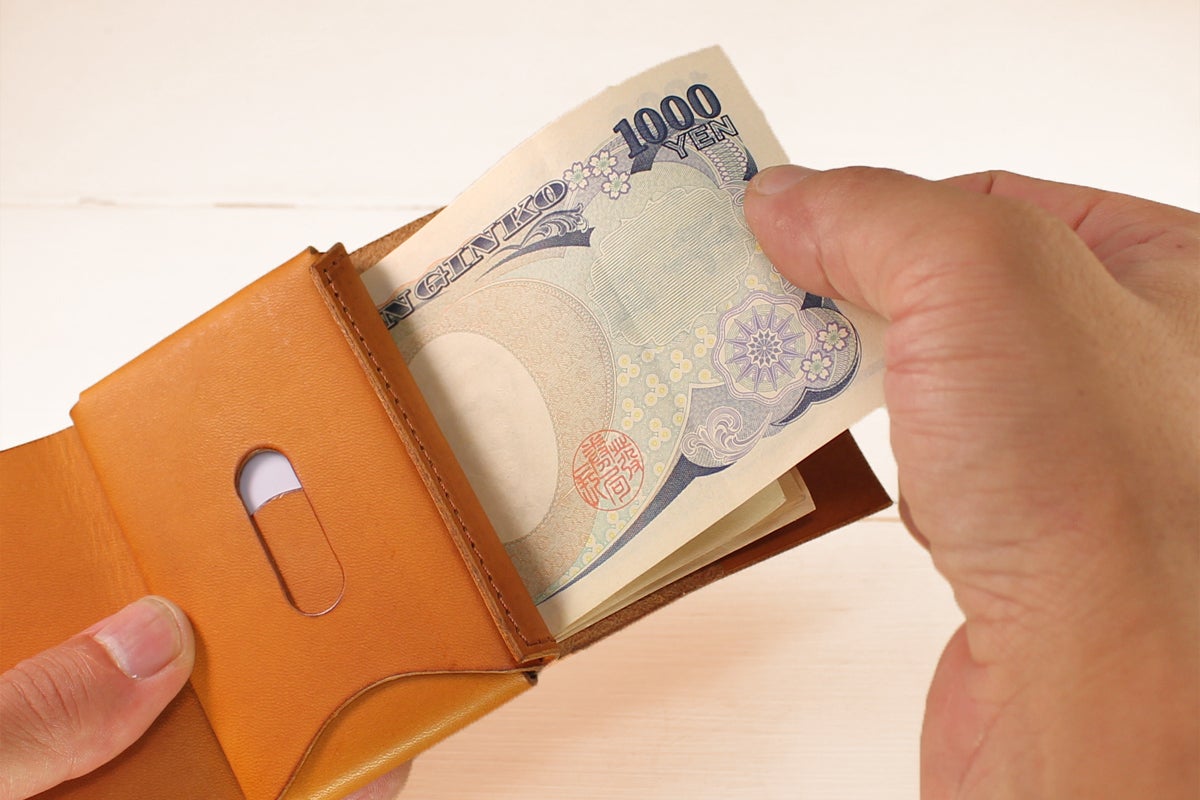 領収書はお札の上に滑り込ませて収納(印字面は内側にしてください)。
