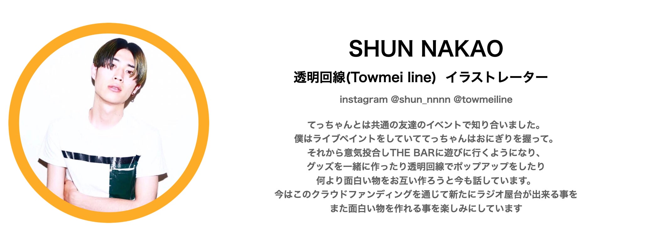 2020/09/19 17:509/7の夜に初めて、9/27までの20日間。折り返し地点10日たった9/17に達成率50%を超えました!ありがとうございます!!ほんとに!!感情を文字にするってほんと顔も見えないから、気持ちを文面に残せる人ってすごいなと思う。例えていうなら、、、オンライン上の同窓会??仲間たちや地元やお客さん。今まで絡んできた人との思い出が、途切れず途絶えず押し寄せてきます。そして、知らない方からの支援も!しっかりお店で返していきます!!いやぁーみんな何かやりたい事や作りたいものがあればやったほうがいいよクラウドファンディング!!もっとしっかりしないと、きちんとしないと、って襟元正されるから(笑)ぐらいこの環境にありがとうって思います。皆さまありがとうございます。さて、新店舗に向けてなのですがラジオ屋台のラジオの部分。僕が大事にしている、「ヒト」を紹介していくというメディアを店舗が始まる前にインスタライブという形でオープンまでやって行こうかなと思います。候補は、、、アポ取れたらスケジュールアップします!街を紹介していってるあの方に登場してもらいたいなぁー!いろんな業界のいろんな街の方が今なにをやろうとしてるのか?これからどう向かっていくのか?そこで話していく中で面白い事が生まれるかも?THEBARはそんなお店でした!そして応援者のメッセージが追加されました↓↓↓透明回線のシュン。元々ザバー発の卓球ブランドのデザインで声をかけたのがキッカケ。とてもクレバーで熱い人間なんで大好きで、透明回線にはザバーの壁画を描いてもらいました!引き続きなにか企てようと思ってます。そして関西を代表とする雑誌の「Meets」の編集長の松尾さん!出会った時は副編集長でいろいろお世話になりました。ほんとにミーツは面白くて、そこに感銘をウケた部分もあります。お店(ヒト)を紹介という意味で。ザバーに来られた際にカウンターで逆に美味しいお店を聴きまくるという飲食店としては真逆の行動をとってしまうぐらい、いろいろ教えてくれてそしてわかりやすい。新世代の〜の回はお世話になりました。引き続き面白い事共にしたいです!!ほんと最近、早くお店してくださいの声や、現場に戻ってこいだったり、刺激をくださいだったりの言葉をあう先々でいわれます。声を大にして言いたい!「ホントにありがとう!!そして誰よりもイッチバン店したいのオレも!」さーいよいと後半戦です!皆さま拡散シェア、支援の方何卒お願いします。リターンはお買い得です!! もっと見る