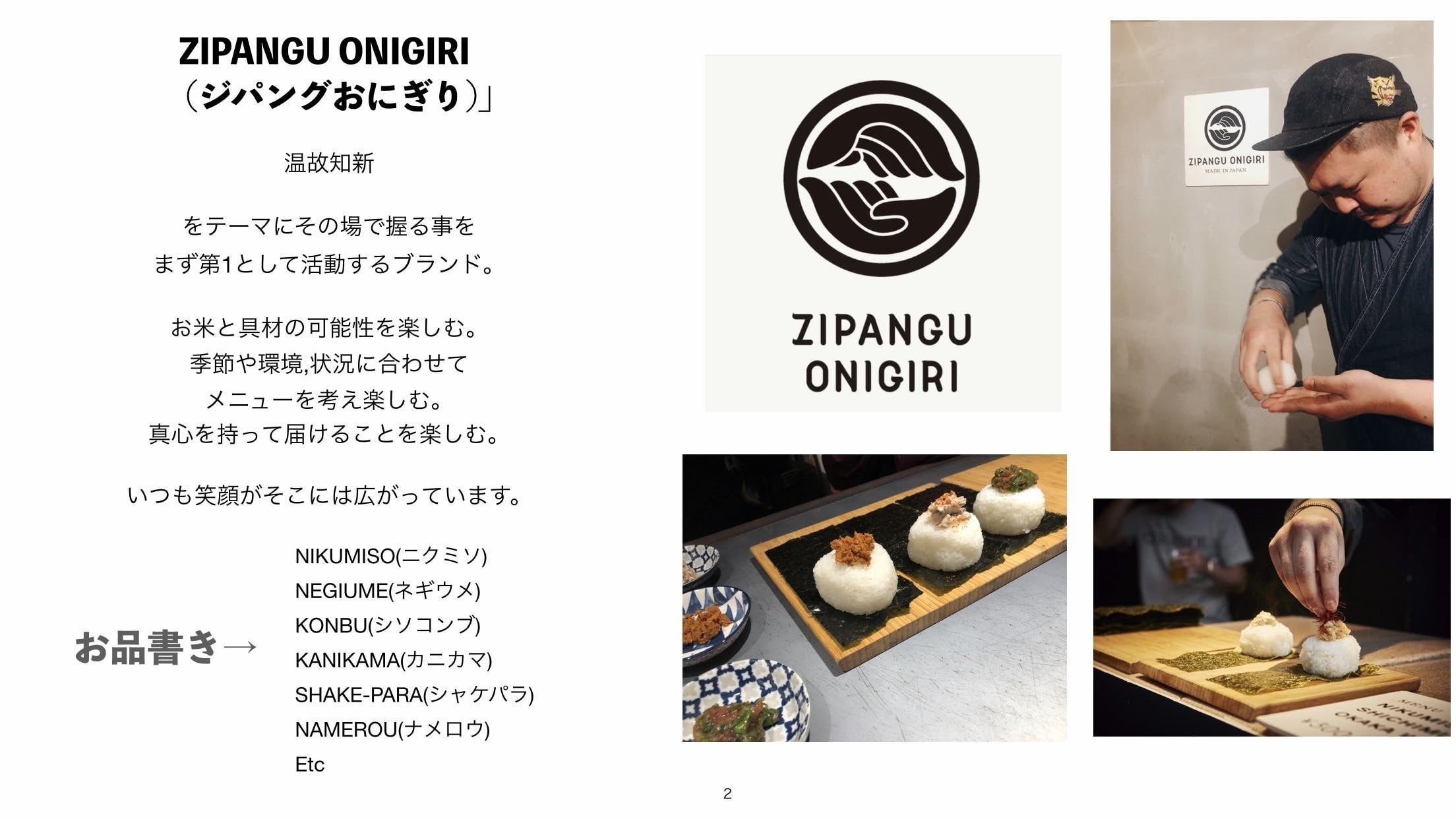 ・ZIPANGU ONIGIRI(ジパングおにぎり)の提供