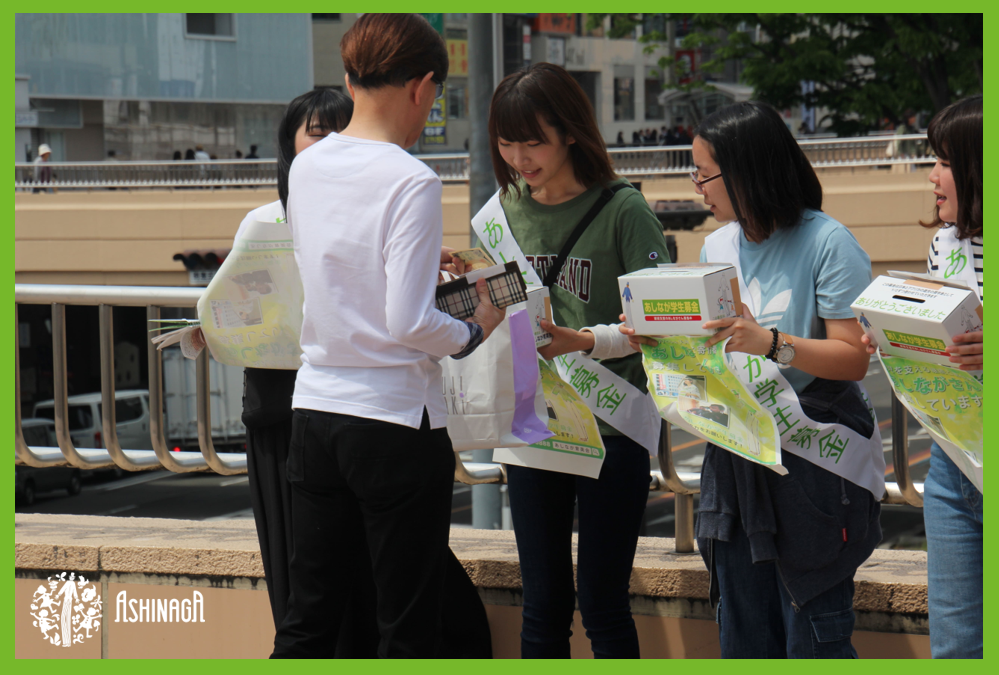 50年の歴史を持つ遺児支援のための募金運動団体で、学生だけで運営されています。毎年春と秋の4日間、全国約200か所で実施している街頭募金活動では、毎回のべ1万人のボランティアスタッフの参加があり、年間約2億5千万円の寄付を募っています。募金はすべて一般財団法人あしなが育英会へ寄付し、あしなが育英会の奨学金事業(国内奨学生事業・AAI事業)のために使われています。