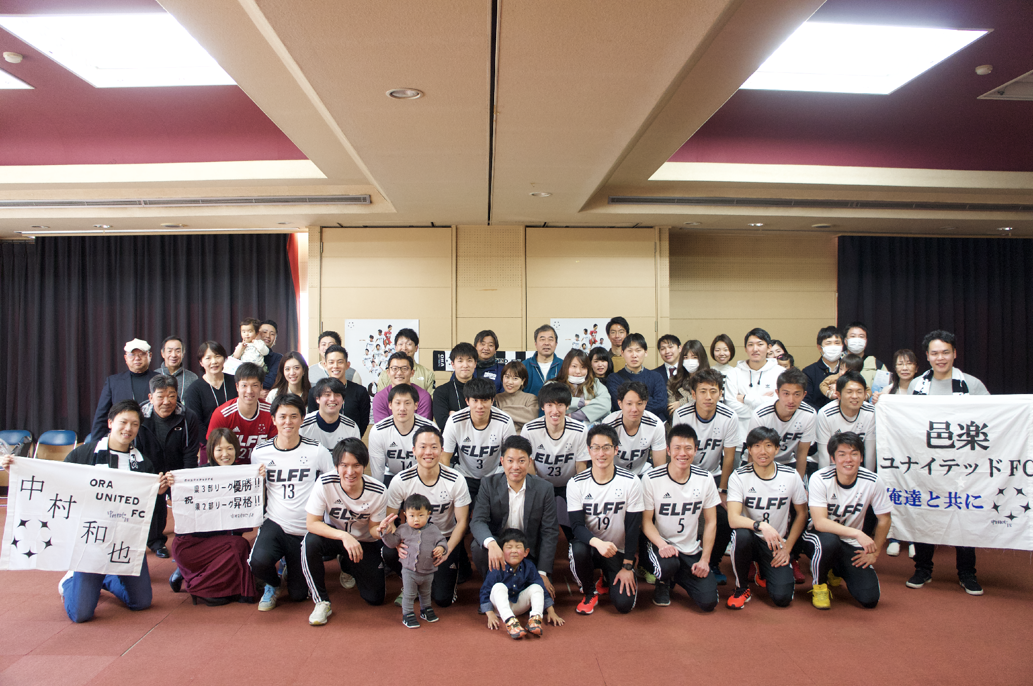 徐々にメンバーも増えてきて、初めてのシーズンが開幕する頃には20名近くの選手が所属してくれることになり、無事に群馬県サッカー協会にチーム登録をして県リーグ3部を戦うことができました。またそれと同時に今まで社会人生活でお世話になった先輩や上司、同僚、仕事を通じて知り合うことのできた社外の方々、昔からの友達や先輩、後輩あらゆる方々に自分の思いをお話しし、ひとり、またひとりとご協力してくださる方が増えていきました。現在では、パートナー企業18社、ファンクラブメンバー60名に支えていただき、活動を続けています。また、現在の邑楽ユナイテッドメンバーは選手21名、チームスタッフ1名(富山)、運営スタッフ3名(国井・山﨑、中村)と、合計25名となりました。