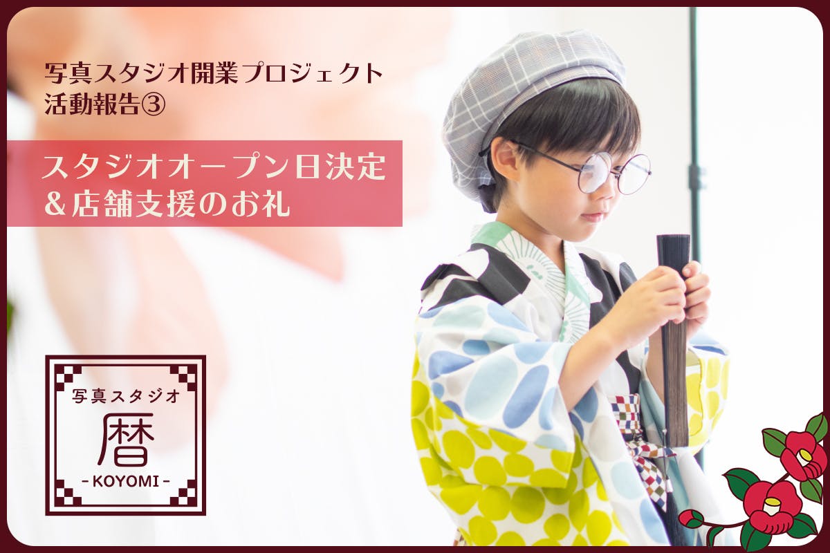 写真スタジオ 暦-KOYOMI-活動報告③スタジオオープン日決定&店舗支援のお礼