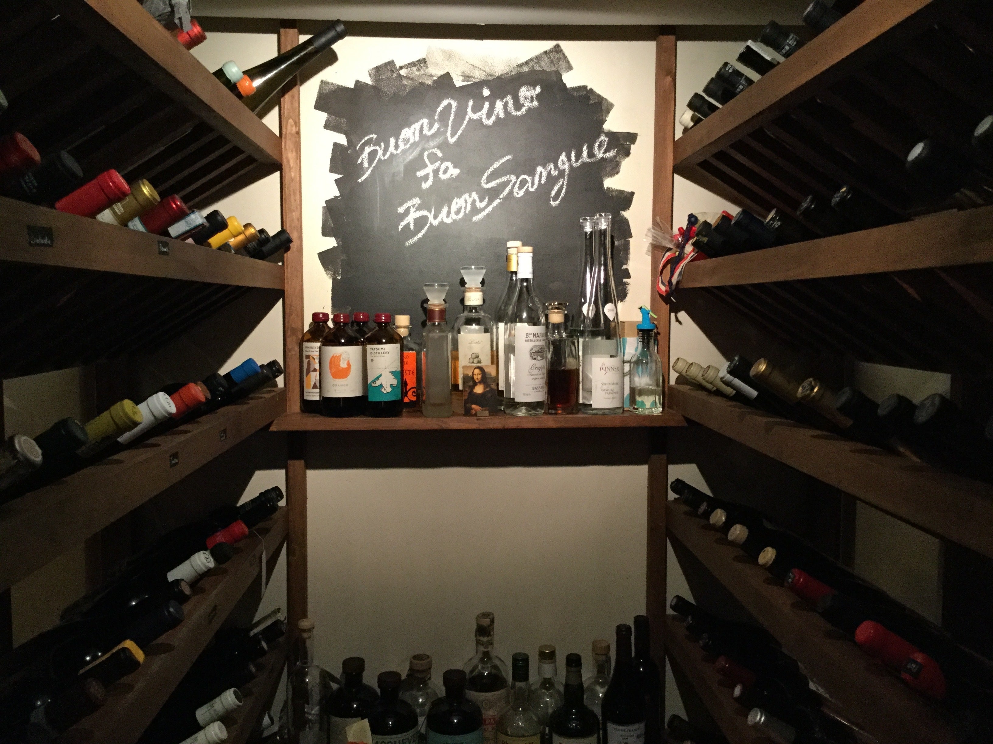 ワインセラーには、イタリアワインを中心に200近い品揃え。